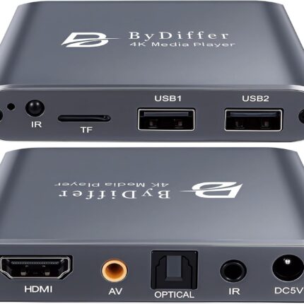 4K HD Digital Media Player, TV MP4 Video Player for USB Drive/Micro SD Card, Digital Signage, Auto Playback, H.265/HEVC, Optical/HDMI/AV Output, Grey