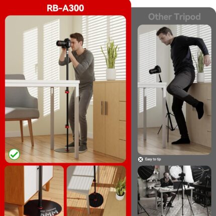 IFOOTAGE Round Base Monopod A300, 60″ Camera Tripod Monopod Aluminum Studio Camera Stand with 1/4” & 3/8” Screw/Light Adapter for Camera, Tripod Head, RingLight, Streaming, Interview, Payload 22lb