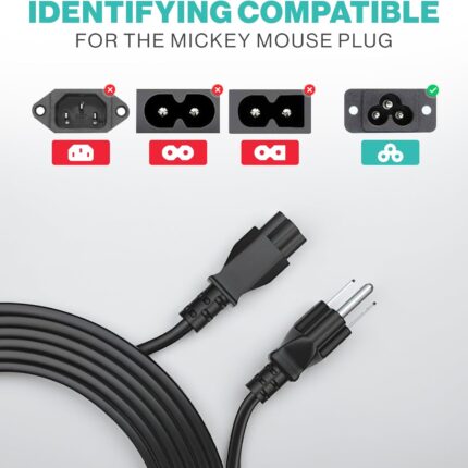 3 Prong AC Laptop Power Cord 5Ft Universal Power Cable | 125V | for Dell HP LG Lenovo Asus Acer Toshiba Sony Laptops/Notebooks, Monitors, Printers, Scanners NEMA 5-15P to C5 Power Cable
