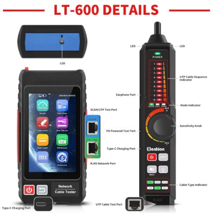 Multifunction RJ45 Network Caber Tester, 4″ IPS Touch Screen UTP Cable Tester,Rechargeable Ethernet Cable Tracer,Support Network Tools, POE++ Detect,Cable Length Meter,RJ45 TDR Test, NCV,PD Power,FTP