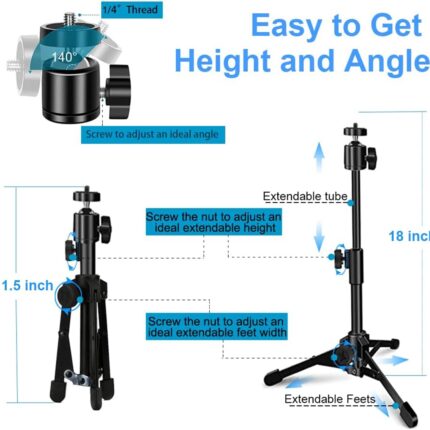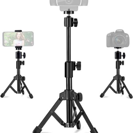 Webcam Tripod Stand Extendable Desktops Tripod for Camera/Phone/Webcam, Desk Tripods Webcam Mount Holder Compatible with Logitech Webcams C925e C922x C922 C930e C930 C920 C615 /iPhone/Ring Light