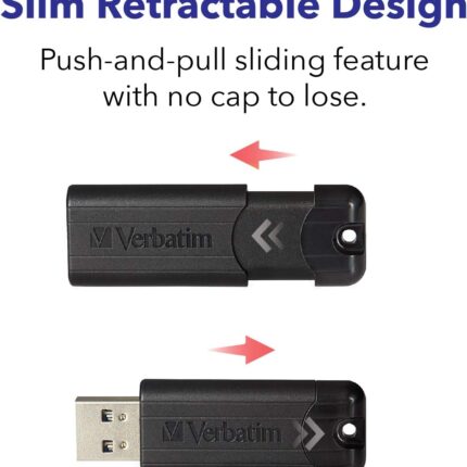 Verbatim 128GB Pinstripe USB 3.2 Gen 1 Flash Drive Retractable Thumb Drive – Black