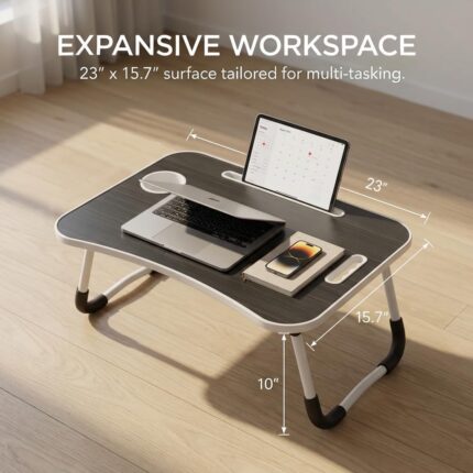 BUYIFY Folding Lap Desk, 23 Inch Portable Wood Black Laptop Bed Desk Lap Desk with Cup Holder, for Working Reading Writing, Eating, Watching Movies for Bed Sofa Couch Floor