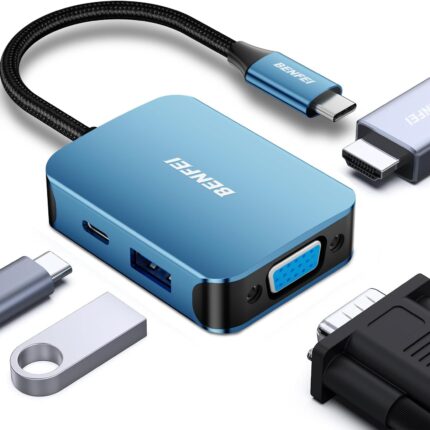 BENFEI USB C HUB 4-in-1, USB Type-C to HDMI VGA Adapter, USB C to USB Adapter, USB Type-C Power Delivery, Compatible with iPhone 15 Pro/Max, MacBook Pro/Air 2023, iPad Pro, iMac, S23, XPS 17