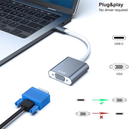 BENFEI USB C to VGA Adapter, Thunderbolt 3/4 to VGA Adapter Compatible with iPhone 15 Pro/Max, MacBook Pro/Air 2023, iPad Pro, iMac, S23, XPS 17, Surface Book 3 and More [Aluminium Shell,Grey]
