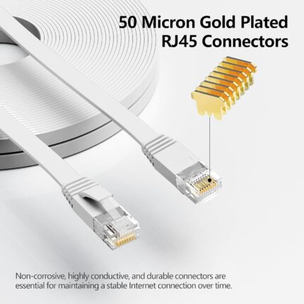 Jadaol Cat 6 Ethernet Cable 50 ft, 10Gbps Support Cat8 Cat7 Network, Flat RJ45 LAN Patch Cable, High-Speed Wired Internet Cable for Router, Modem, Switch, Gaming Consoles, PC, Streaming Devices, White