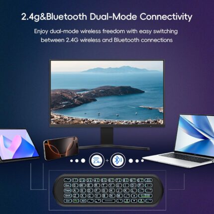 iPazzPort Air Mouse Remote with Keyboard, 2.4G Wireless & Bluetooth Backlit Controller, 7-Color LED, Rechargeable Type-C, IR Learning for Smart TV, Android Box, PC, HTPC