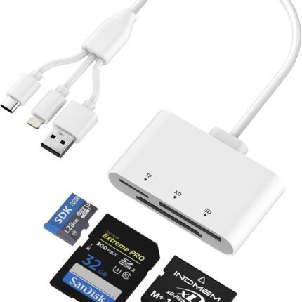 3-in-1 SD Card Reader for iPhone with Lightning/USB-C/USB-A – XD,SD,MicroSD Memory Card Adapter up to 2TB, Compatible with iPhone 16/15/14, iPad, Android, MacBook,PC,Camera & Drone
