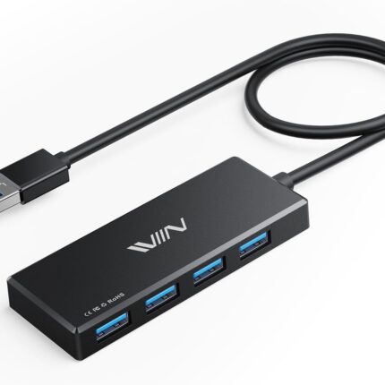 USB 3.0 Hub, 4 Port USB Hub Splitter, USB A Expander Portable USB Adapter Multiport Data Hub for Laptop, iMac Pro, MacBook Air, Mac mini/Pro, Surface Pro, USB Flash Drives, and Mobile HDD-Black