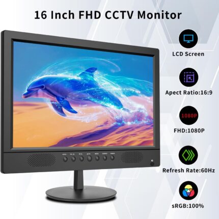 16inch Security Monitor,Wall-Mounted Monitors Supports USB/Full Format Video Playback,CCTV Monitors with AV/HDMI Input/VGA/BNC,Built-in Speaker,Remote Control