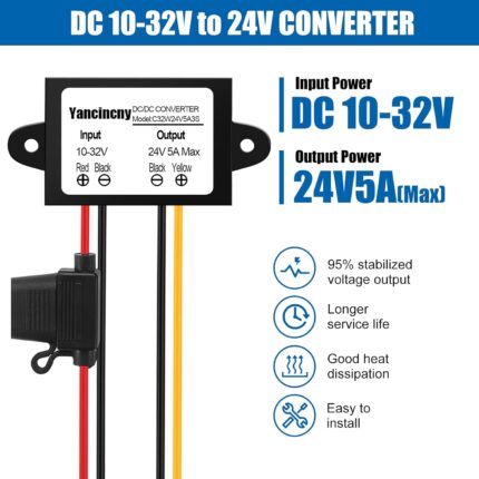 Voltage Stabilizer 10-32V to 24V 5A, dc 12V to 24V 120W Waterproof DC DC Converter with Over Current/Temperature Protection & Fuse, for 24V Lighting, CCTV Camera, Car Truck