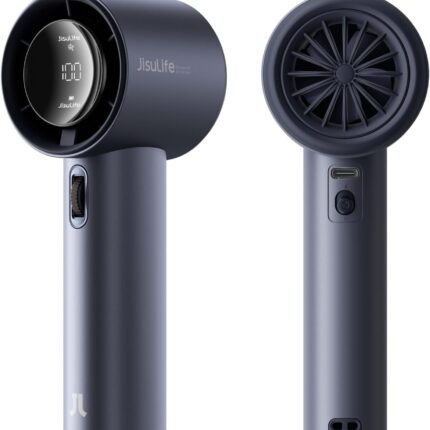 JISULIFE Handheld Fan Pro – Extreme Cooling Output: 1-100 Speed Scroll Wheel, Metal Body, Digital Display, 1.5H Fast Charge, 5000mAh-Portable Fan for Travel, Valentines Day Gifts for Her Him(Grey)