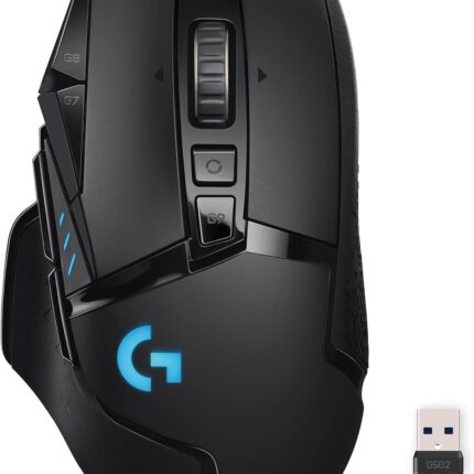 Logitech G502 Lightspeed Wireless Gaming Mouse with Hero 25K Sensor, PowerPlay Compatible, Tunable Weights and Lightsync RGB – Black