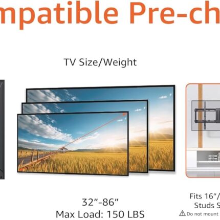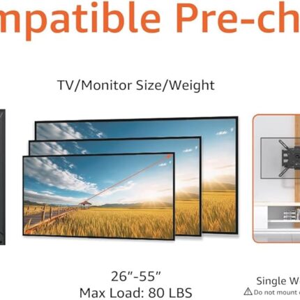 Amazon Basics Full Motion Articulating TV Wall Mount, with Swivel and Tilt, for 26″ to 55″ TVs and Flat Panels up to 80 Lbs, VESA Compatible, Black