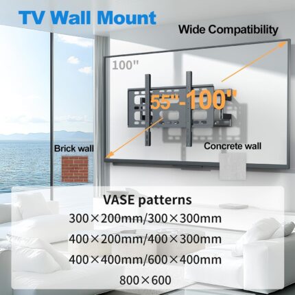 TV Wall Mount for 55-100 Inch TVs,up to 264 lbs,TV Mount with Extension,Wall Mount TVs Bracket Full Motion with Articulating Dual Arms,Max VESA 800 x 600mm (VC-Z1688)