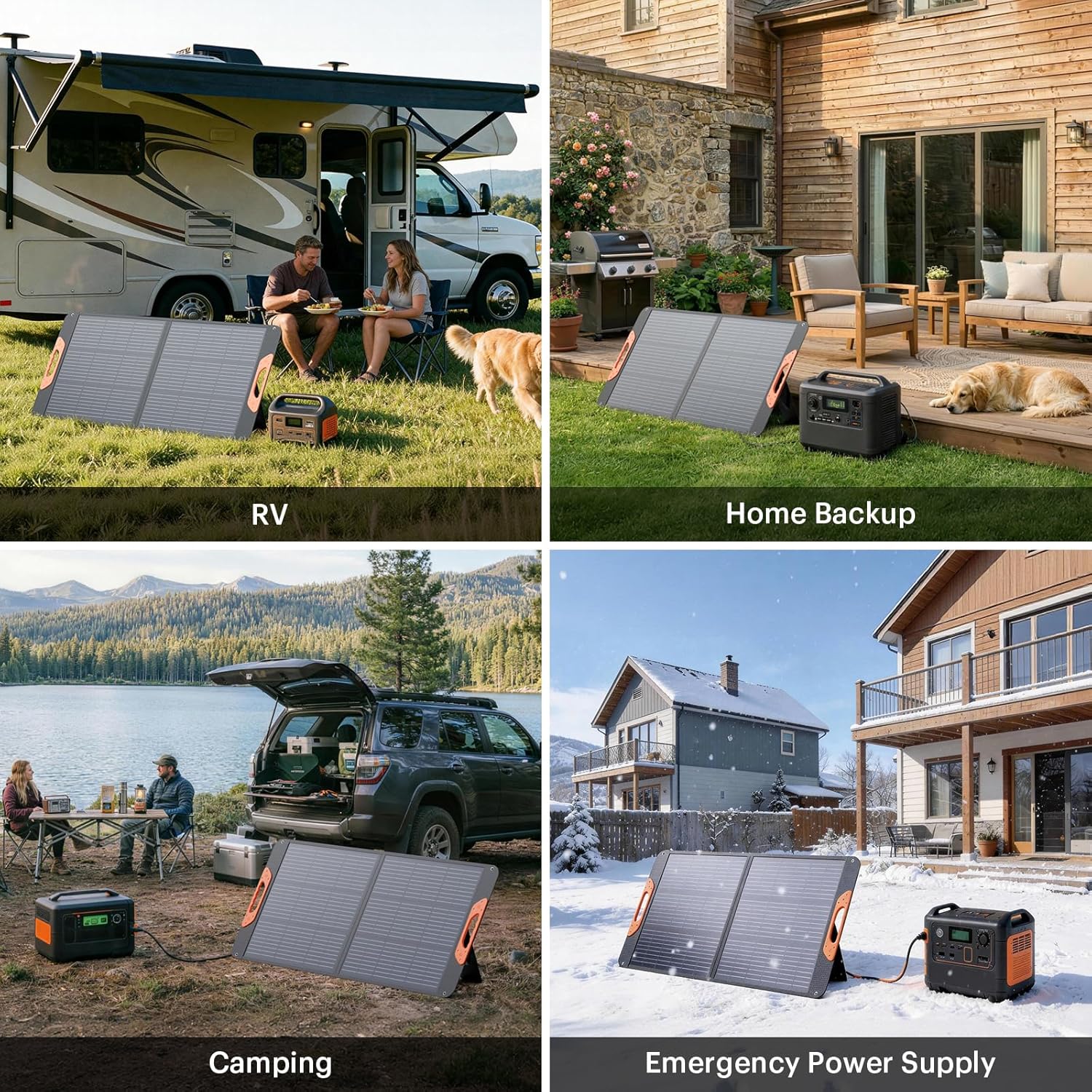 I got the 100W and it works great with my Jackery Explorer 300. Got off work and saw the box on my porch. Hooked it up on a cloudy day and charged my Jackery from 84% to 100% in about 20 minutes. Really surprised by all the attachments on the wiring and additional adapters (don’t need for my setup), all of which zips up nicely to the panel. You could hook up your phone, speaker, or whatever to just the solar panel with it’s USC-C port and 2 USB ports. Solid magnets keep it closed, with easy carry handles, and really strong Velcro to keep the legs attached to the solar panel. 10/10 quality and performance