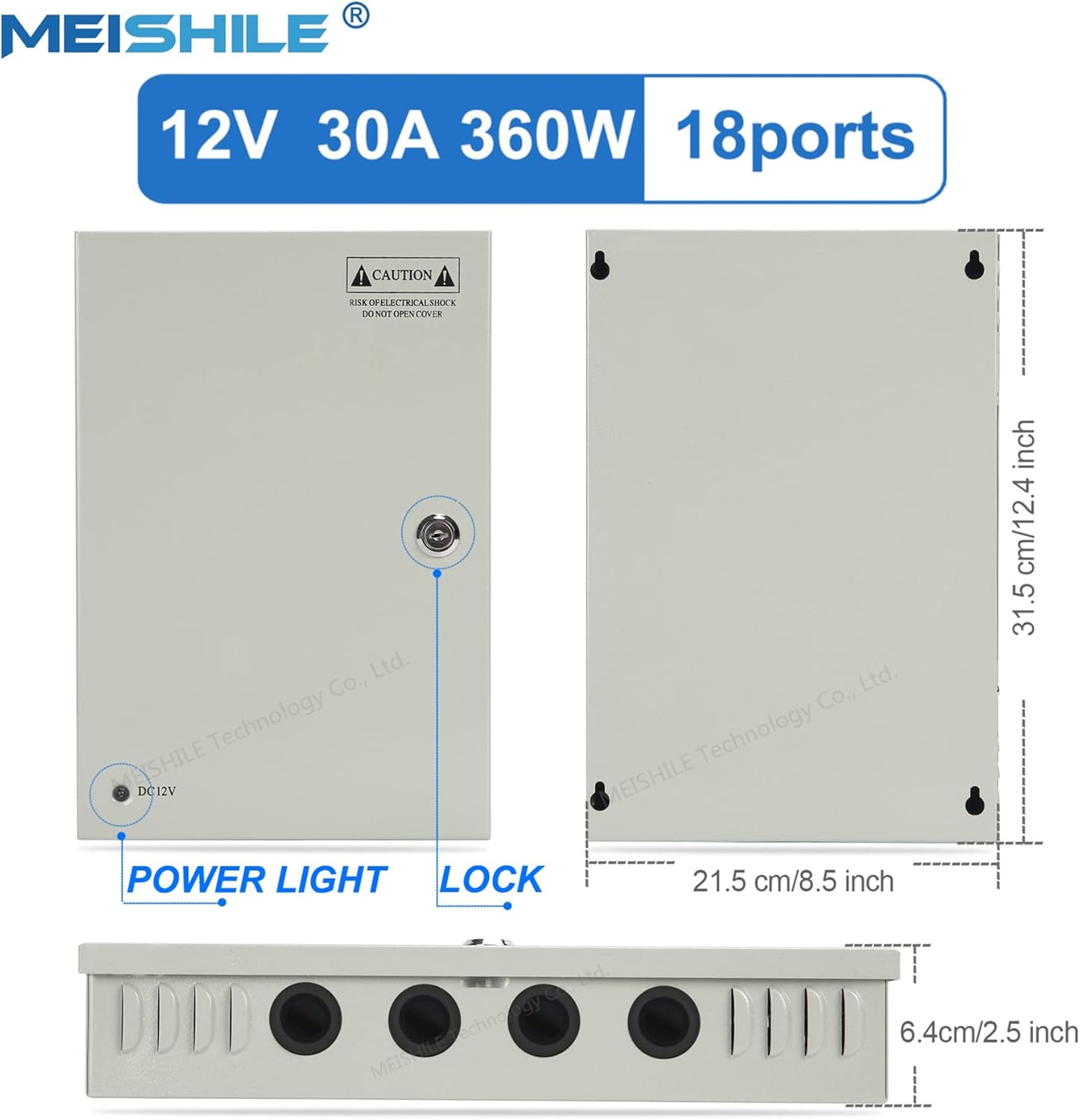 18 Port Channel 12V 2A CCTV Power Supply Box AC-DC Distributed Cabinet 1.5/1/0.5A Security Cameras DVR Converter Transformer Drive LED Light Strip Lamp Electric Model PSU SMPS 12Volt 30Amp 360Watt