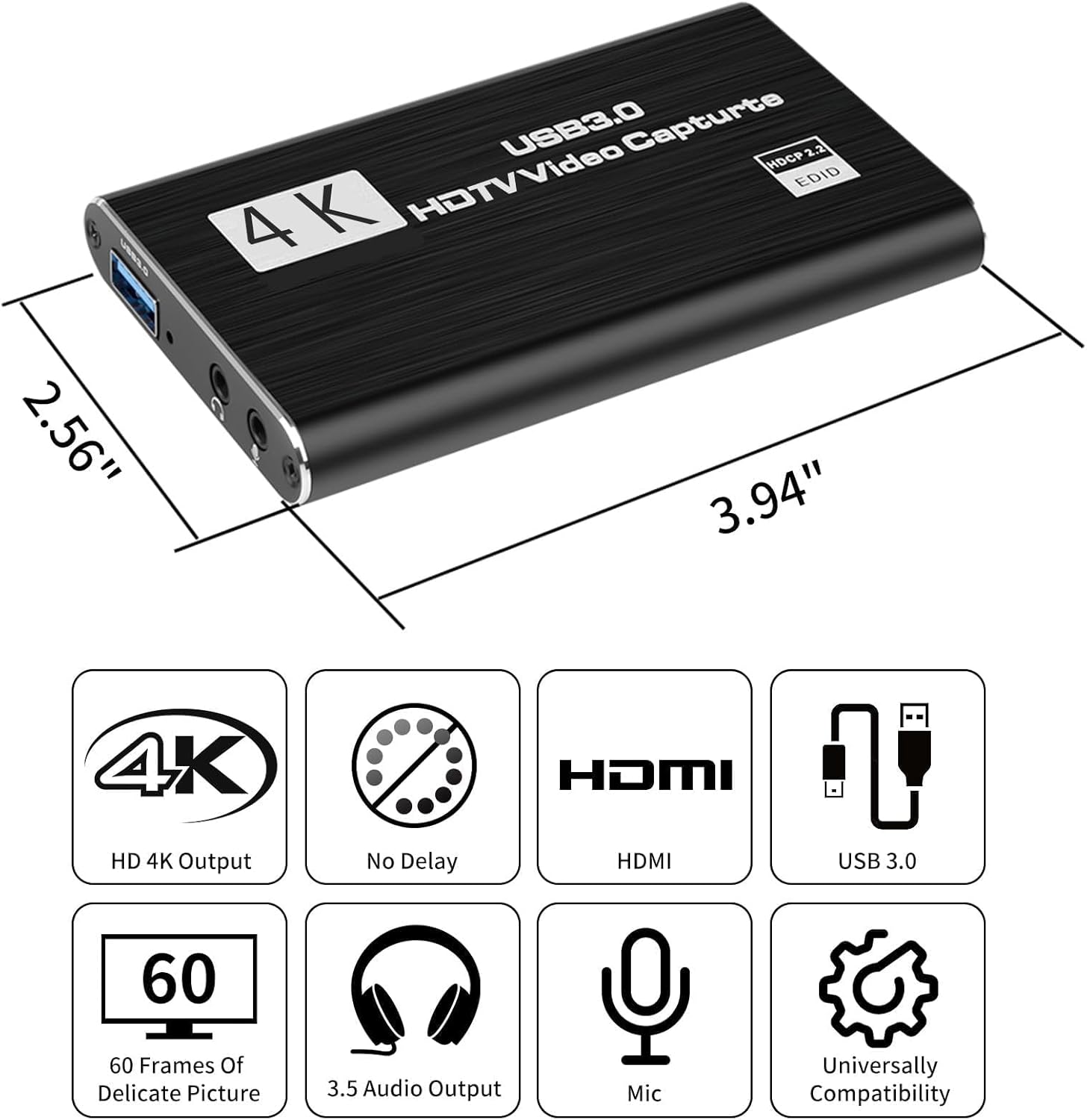 Okay, so here’s the scoop—I’m really liking this 4K HDMI capture card! It delivers solid Full HD 1080p at 60 FPS with that handy built-in mic input, which makes recording voice commentary super easy. Hooking it up is a breeze—plug and play, and you’re ready to roll in OBS or your favorite streaming software.Here’s the one tiny catch: if you’re planning to stream live, be prepared to spend a bit of time fine-tuning your setup. It isn’t entirely plug-and-play for streaming—some research and tinkering might be needed to get everything correlated just right with your audio and video sources. But once you get the hang of it, it’s easy to work into your routine—and it feels reliable and intuitive.All in all, it’s a great value for casual streamers or content creators who don’t need all the bells and whistles—especially with its crisp capture and built-in mic. Just give yourself a bit of setup time, and it’ll become a smooth part of your setup in no time.IN SUMMARY:This capture card gives you crisp 1080p 60FPS recording and even has a mic input for commentary, which is awesome for content creators. It might take a little finessing and setup research for streaming, but once you get it dialed in, it’s super easy to use and works seamlessly in a gaming setup.