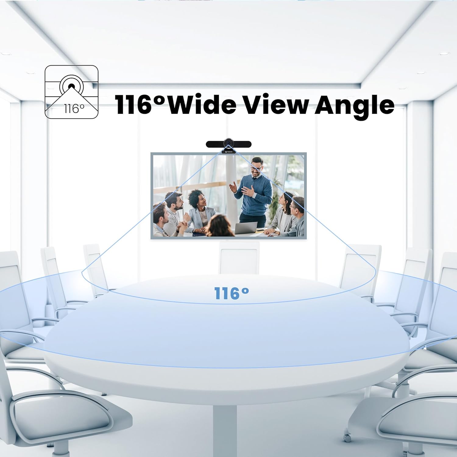 116° Wide-Angle 4K USB-C Conference Webcam – Upgrade to professional-quality video calls with a fixed 116° wide-angle lens that captures more people in the frame. Delivers stunning 4K Ultra HD resolution with vibrant colors and sharp detail—ideal for Zoom meetings, Teams calls, webinars, online classes, and live streaming.