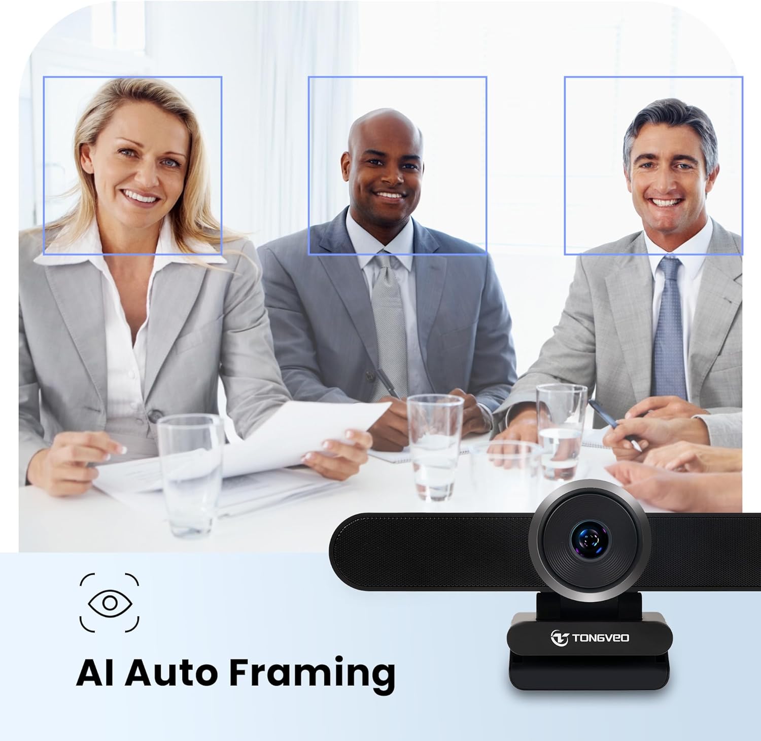 13 reviews for 4K Webcam Conference Call TV Room Web Camera with Dual Microphones &Speaker, | All-in-One USB Video Camera, 116° Wide Angle, AI Auto Framing | Compatible with Zoom, OBS