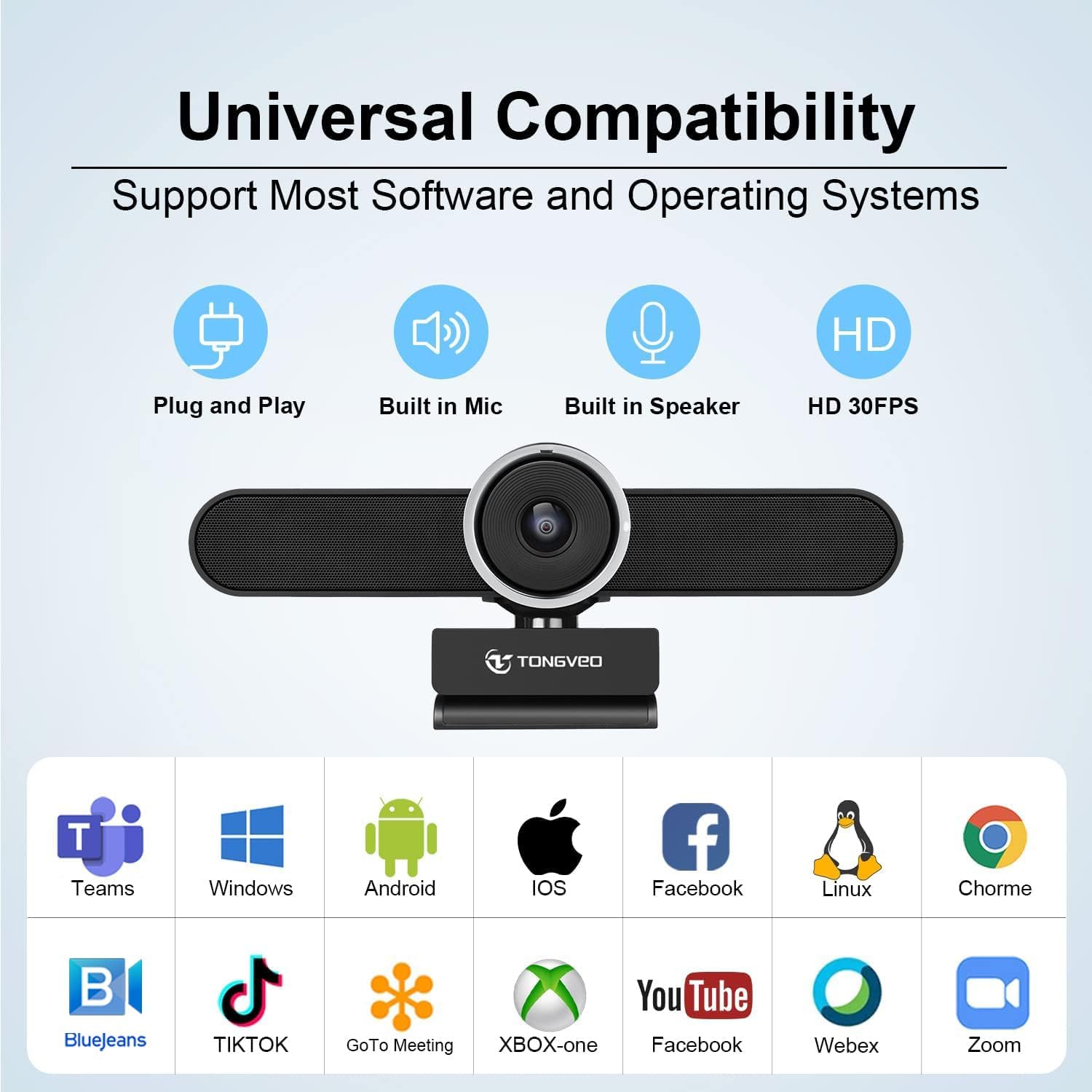 Wide Device Compatibility & Flexible Mounting – Works with Windows XP/7/8/10/11 and macOS 10.4 or higher. Mount easily on a monitor, laptop, or tripod for versatile placement. Ideal for online meetings, distance learning, telehealth, streaming, and virtual events—your go-to webcam for any environment.