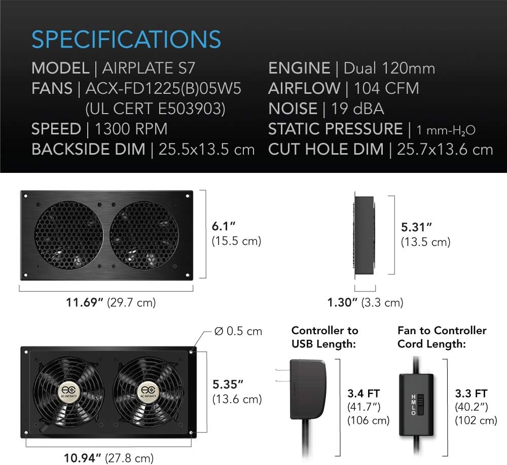9 reviews for AC Infinity AIRPLATE S7, Quiet Cooling Fan System 12″ with Speed Control, for Home Theater AV Cabinets
