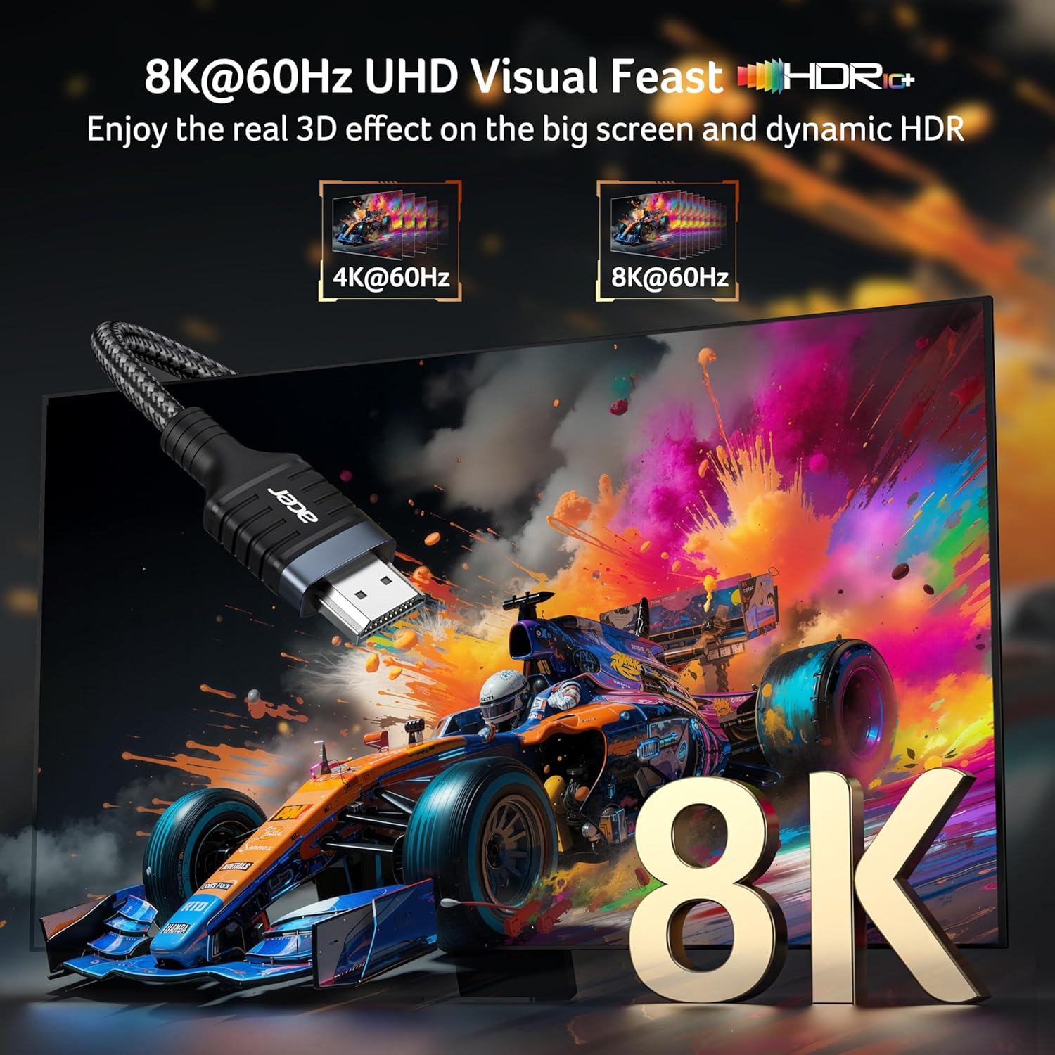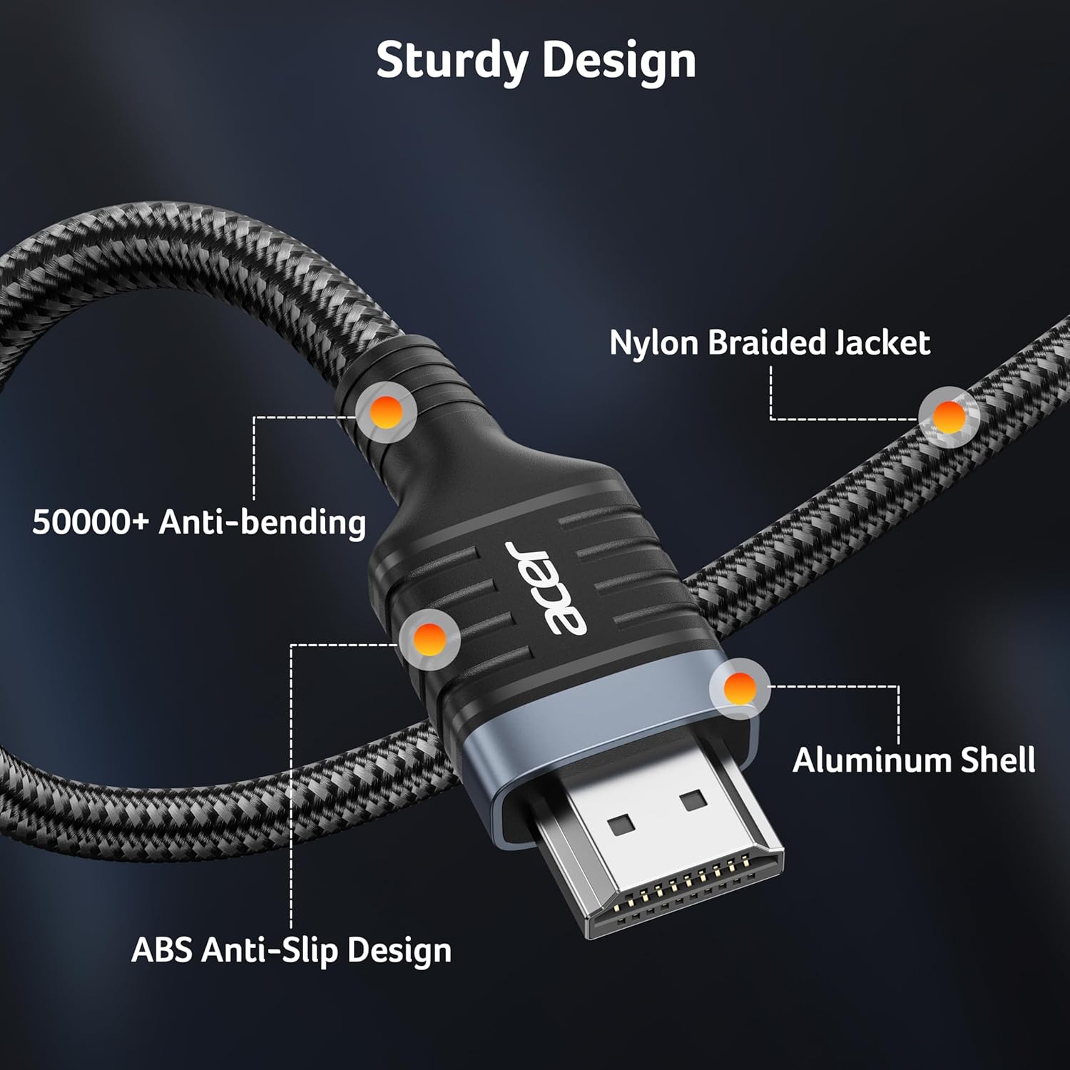 acer 8K HDMI 2.1 Cable 10FT, 48Gbps Ultra High-Speed Braided Cord Supports 8K@60Hz, 4K@120Hz, HDR10+/HDCP 2.2 & ARC/eARC, Certified HDMI Cable Compatible with PS5, PS4, Xbox, Monitors, Laptops, HDTV