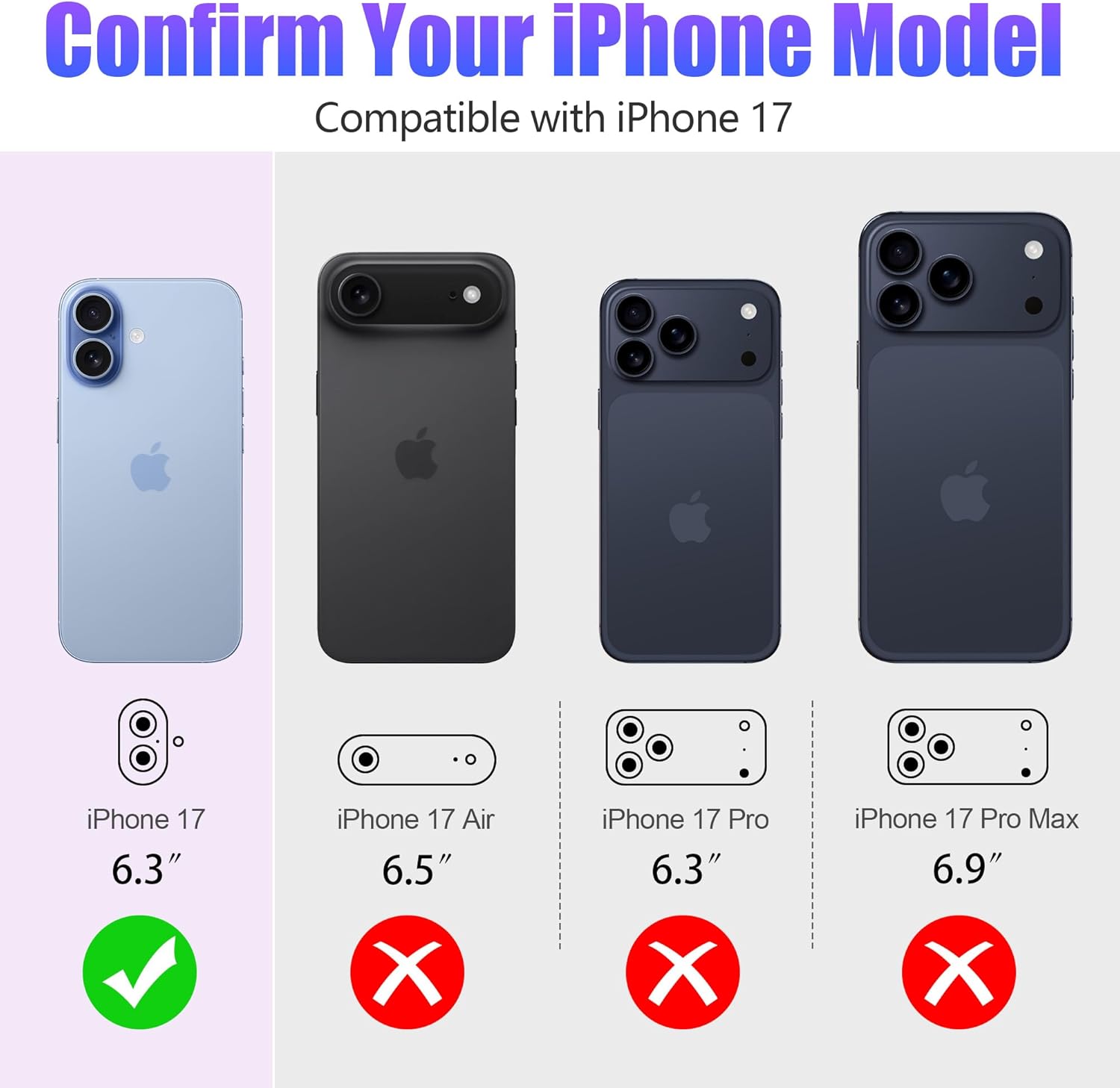 ⭕[Confirm your iPhone Model] Compatible with iPhone 17 (6.3-inch) – the latest models released in 2025. Designed to fit the 3x raised camera array perfectly, ensuring zero obstruction for your photos and videos.