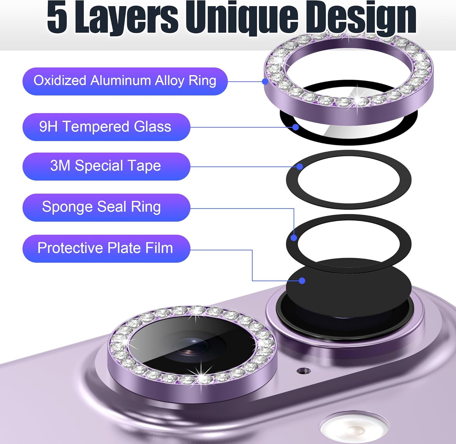 ⭕[Two Bling Effects] Packaged with 3 diamond bling rings and 3 glitter bling rings, these protectors allow you to customize your device according to your personal style. The optical-grade glass safeguards your iPhone 17 camera lens from damage and scratches while maintaining full photo quality. Features include.