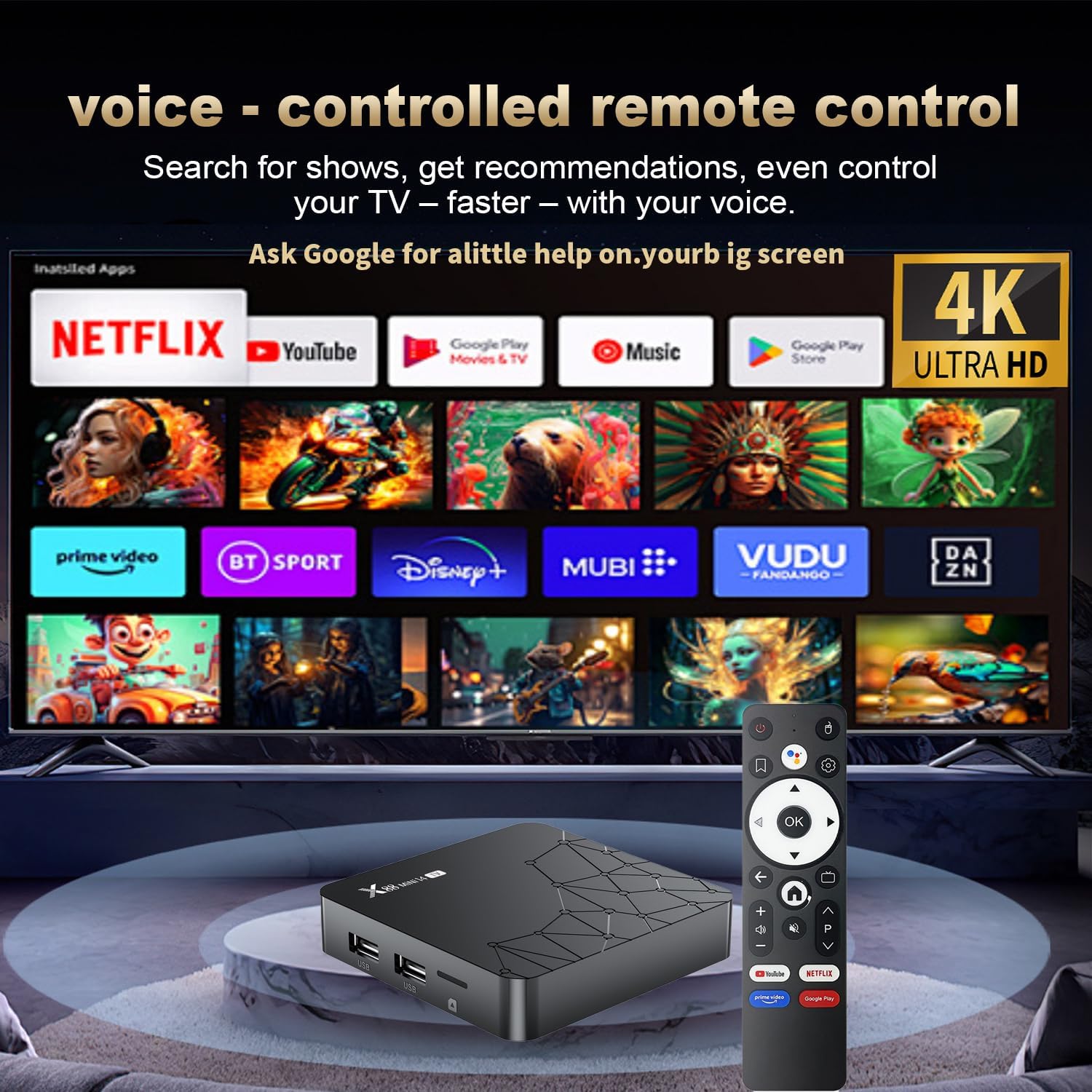 【Latest Android 14.0 and App Compatibility】Our TV box runs on the latest Android 14 system and offers advanced security features, optimized performance, and access to an extensive app library on the Google Play Store. The 64-bit Android operating system is fully compatible with powerful apps, offering you endless entertainment options.