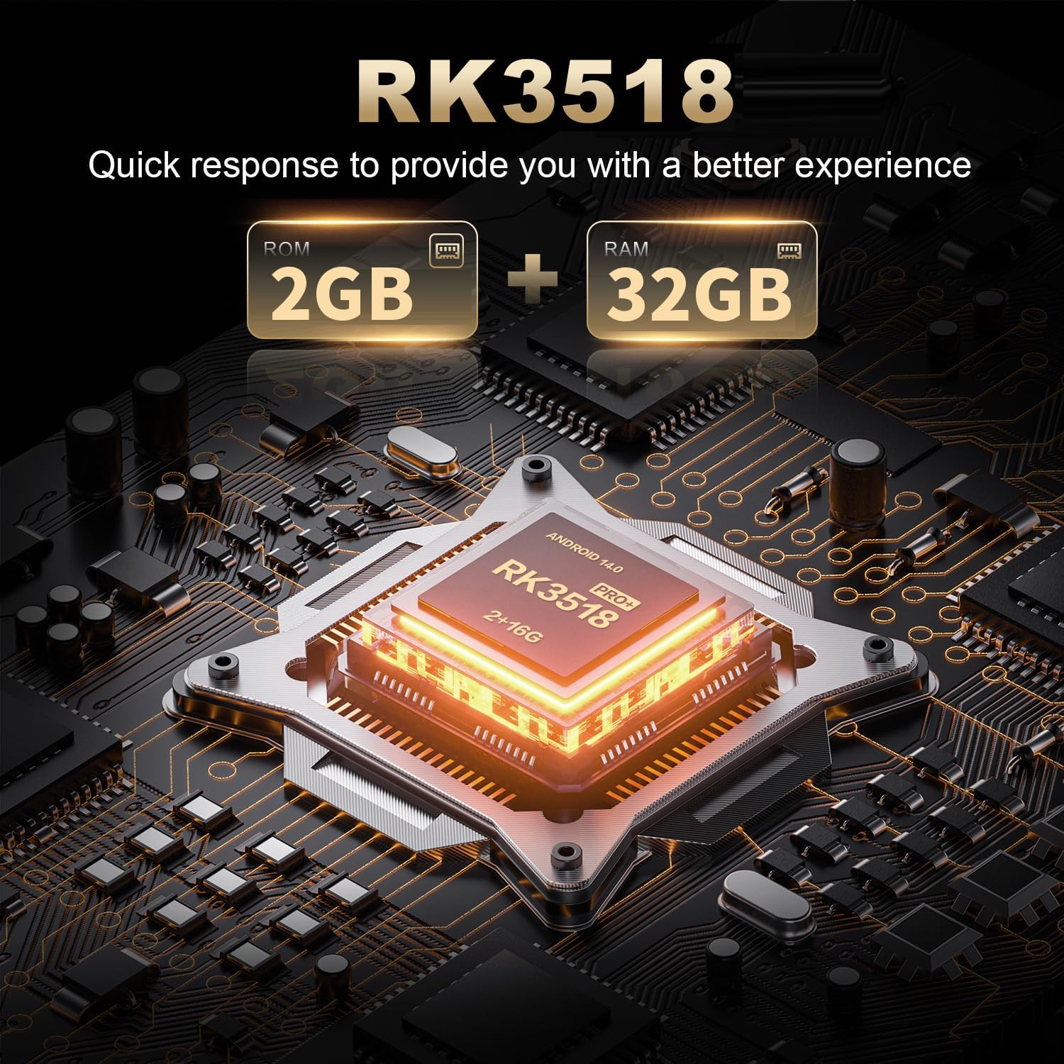 【RK3518pro Chipset】Equipped with a powerful RK3518pro chipset, 2GB RAM, and 32GB internal storage, this TV box ensures smooth operation. It easily handles multitasking, allowing you to switch between apps, stream content, and play games without lag. The advanced CPU provides the processing power needed for a seamless entertainment experience.