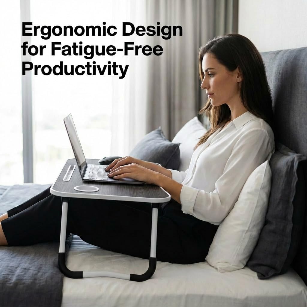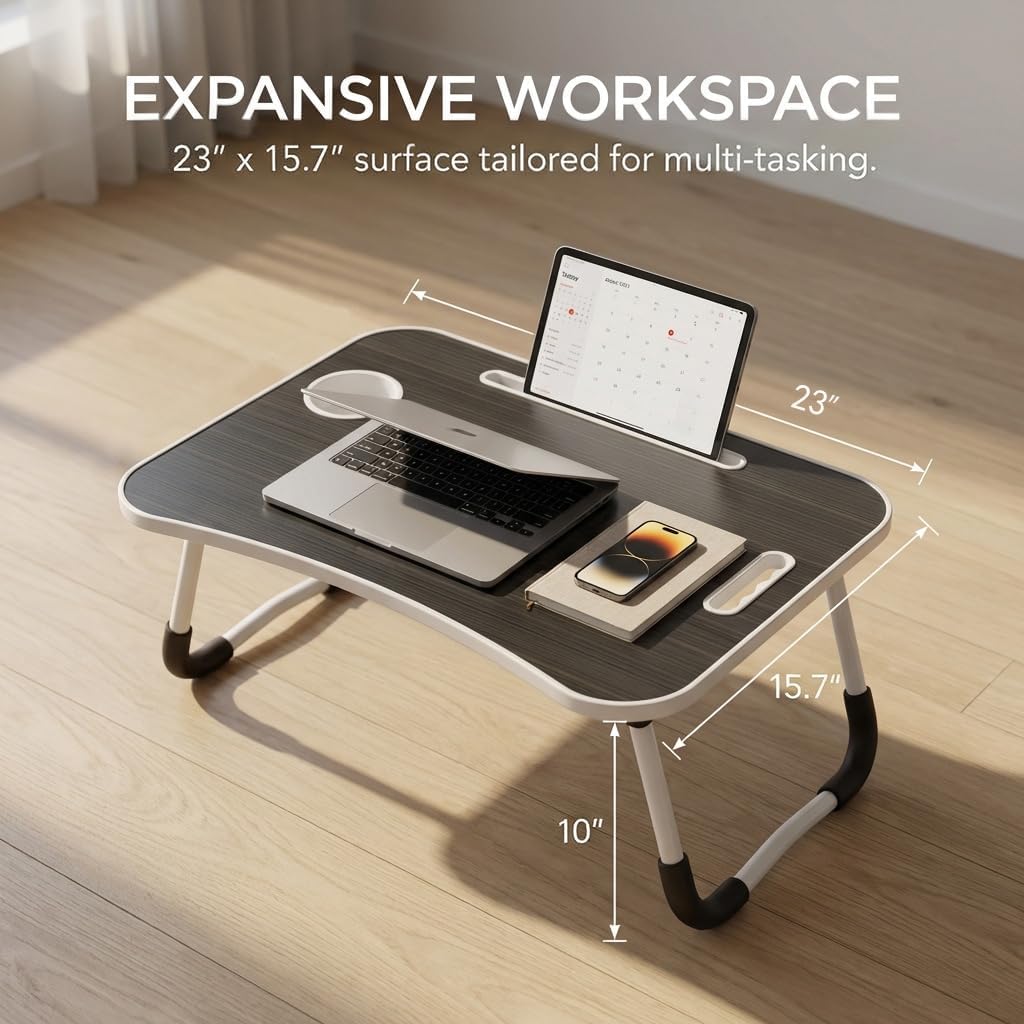 MULTIFUNCTIONAL LAPTOP BED DESK: Ideal for work, study, reading, watching movies, eating, on bed, sofa, balcony, floor, outdoor, etc. Widely used as laptop desk, kids bed table, dining bed tray, mini writing desk, office standing desk, book/ Tablet table, picnic table