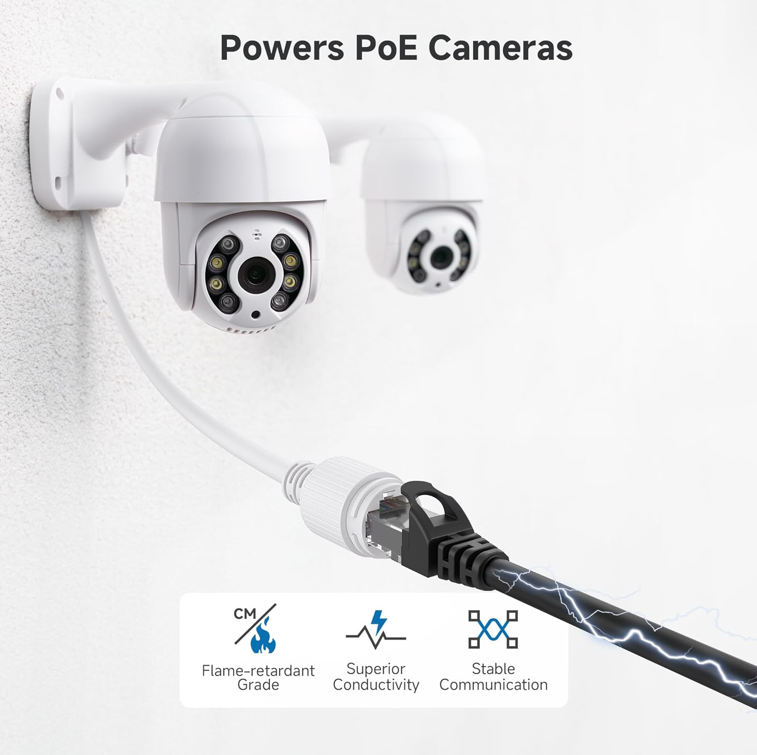 High-Speed Data Transfer: With up to 550 MHz bandwidth, this ethernet cord is ideal for server applications, cloud computing, video surveillance, and streaming high-definition video. It also supports Power over Ethernet (PoE, PoE+, PoE++) for powering devices like IP cameras, VoIP phones, and wireless access points, ensuring fast and reliable network performance.