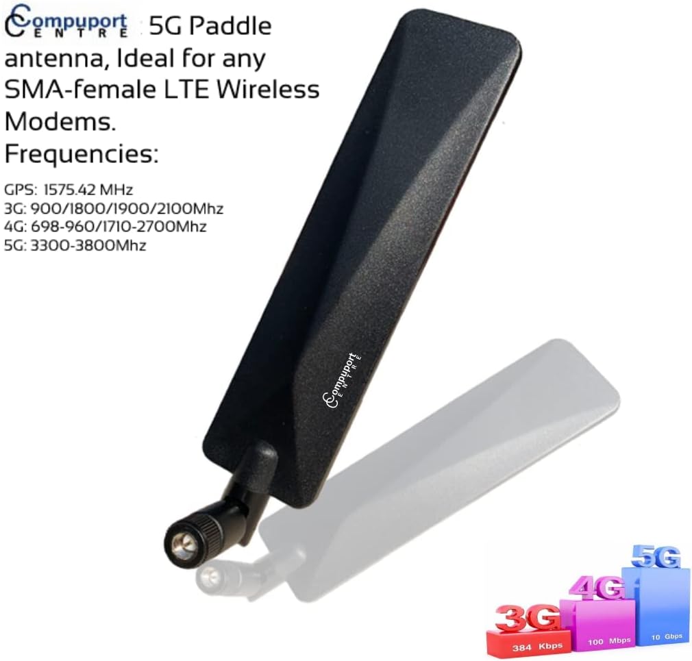 CompuPort Telemetry Ultra-Wideband 5G/4G/LTE Cellular MIMO Omni-Directional Paddle Antenna 3800 Mhz. Compatible with Sierra Wireless, Airlink, Microhard, DIGI, Cradlepoint and Any SMA Wireless Modems