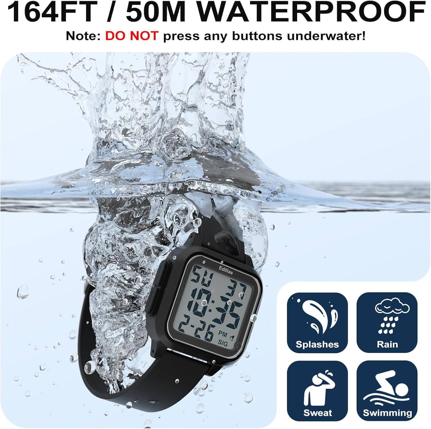 8 reviews for Edillas Square Sport Watch Digital for Women’s Men’s (Big Numbers Large Face 5ATM Waterproof Alarm Stopwatch Date Week Military Back Light) Watch for Teenagers