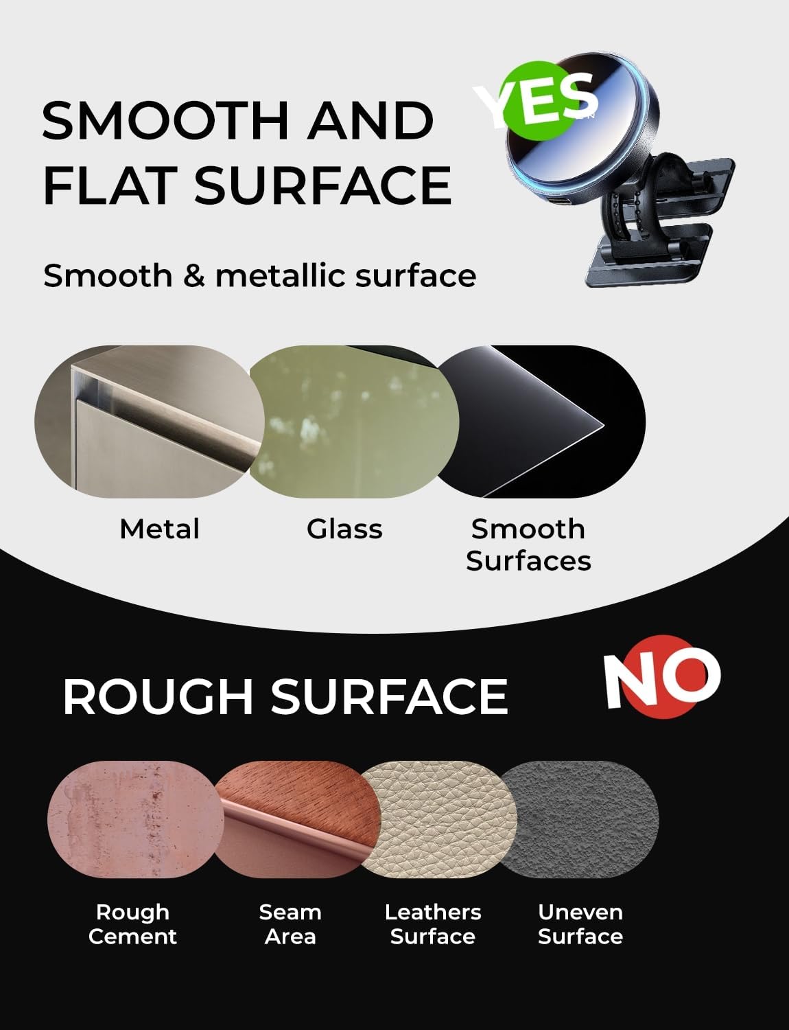 2025 Premium Design:LISEN MagSafe Car Wireless Charging Mount for iPhone uses official Tora-TC Heat Sink for long-term, stable use, ensuring superior quality and functionality compared to other products.Tips: 1 Ensure the base sticker is correctly positioned and securely adhered once to avoid weakening the adhesive from adjustments 2.Stick it on a smooth car surface as miuch as possible. If it is pasted on an uneven surface, there may be a risk of falling.Does not support sticking in RoughCement、Seam Area、Leathers Surface、Uneven Surface