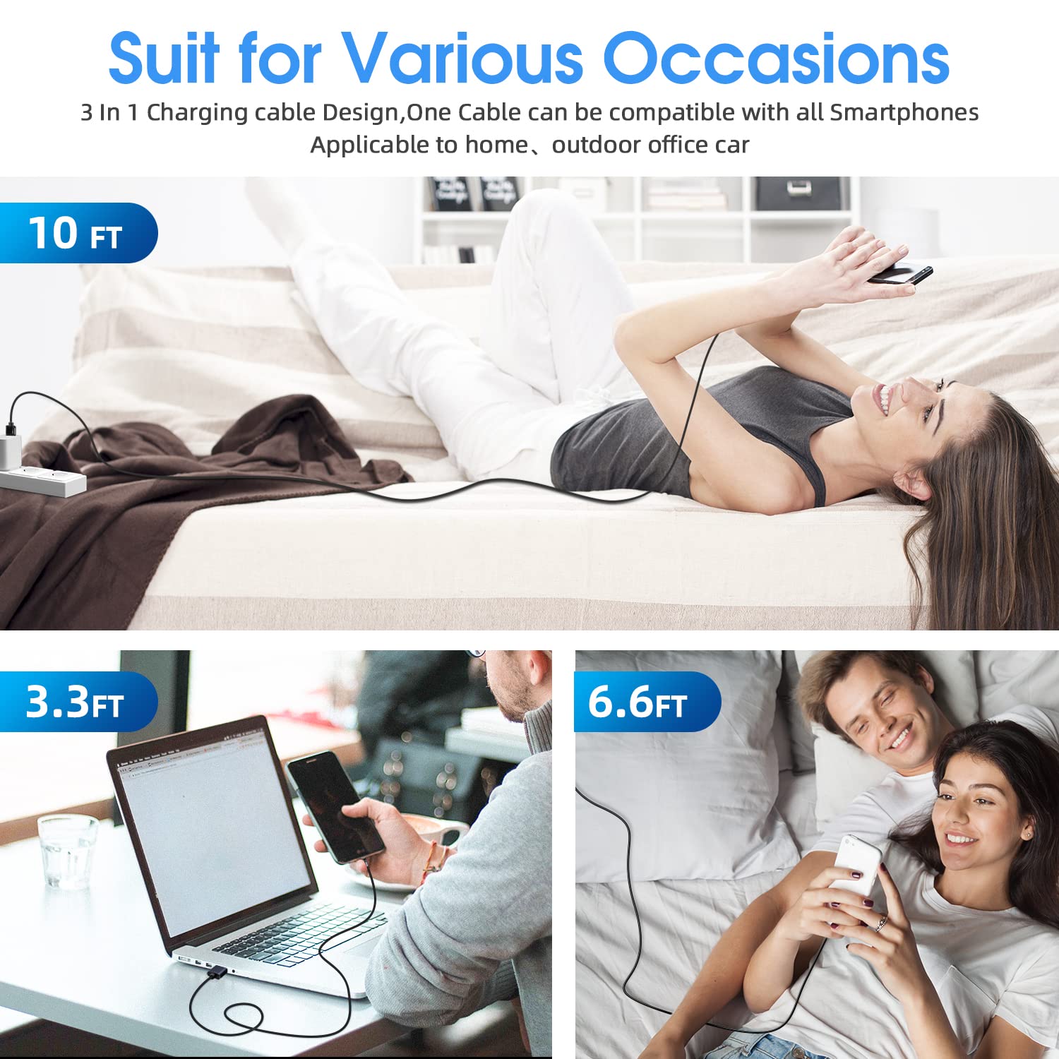 【Multiple Lengths】Ankndo USB magnetic charging cable with different length combination (3ft,3ft,3ft,6ft,6ft,10ft) for a variety of occasions, Enjoy charging always and everywhere. (Note: This magnet charger cable just Support Charging Not support Data transfer. Do not compatible with Car-Play, Android Auto).