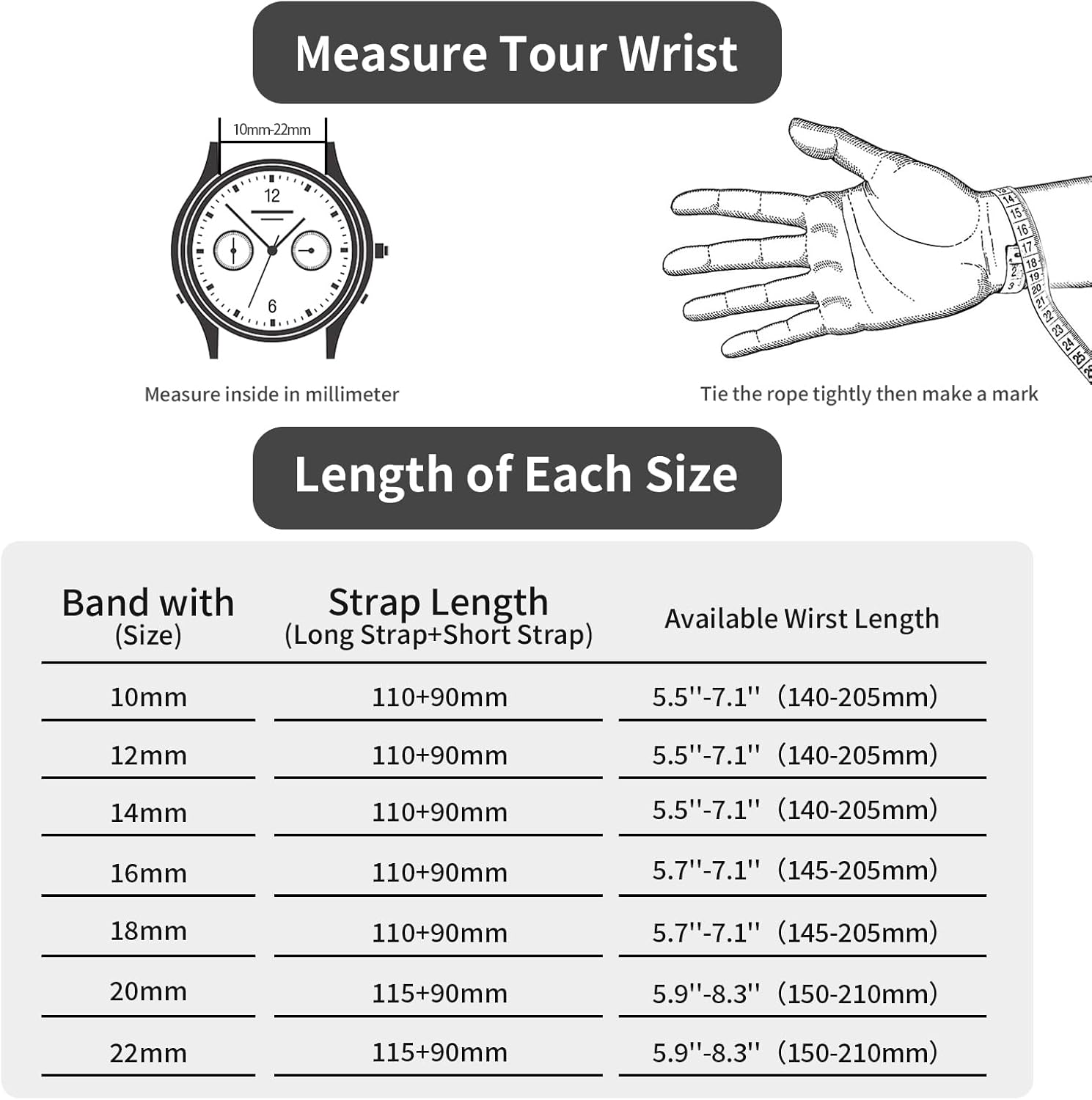Band Width: 18mm 20mm 22mm The TStrap watchband, which can be applied to traditional watches and smart watch that the width of watch lug is 18mm 20mm 22mm.