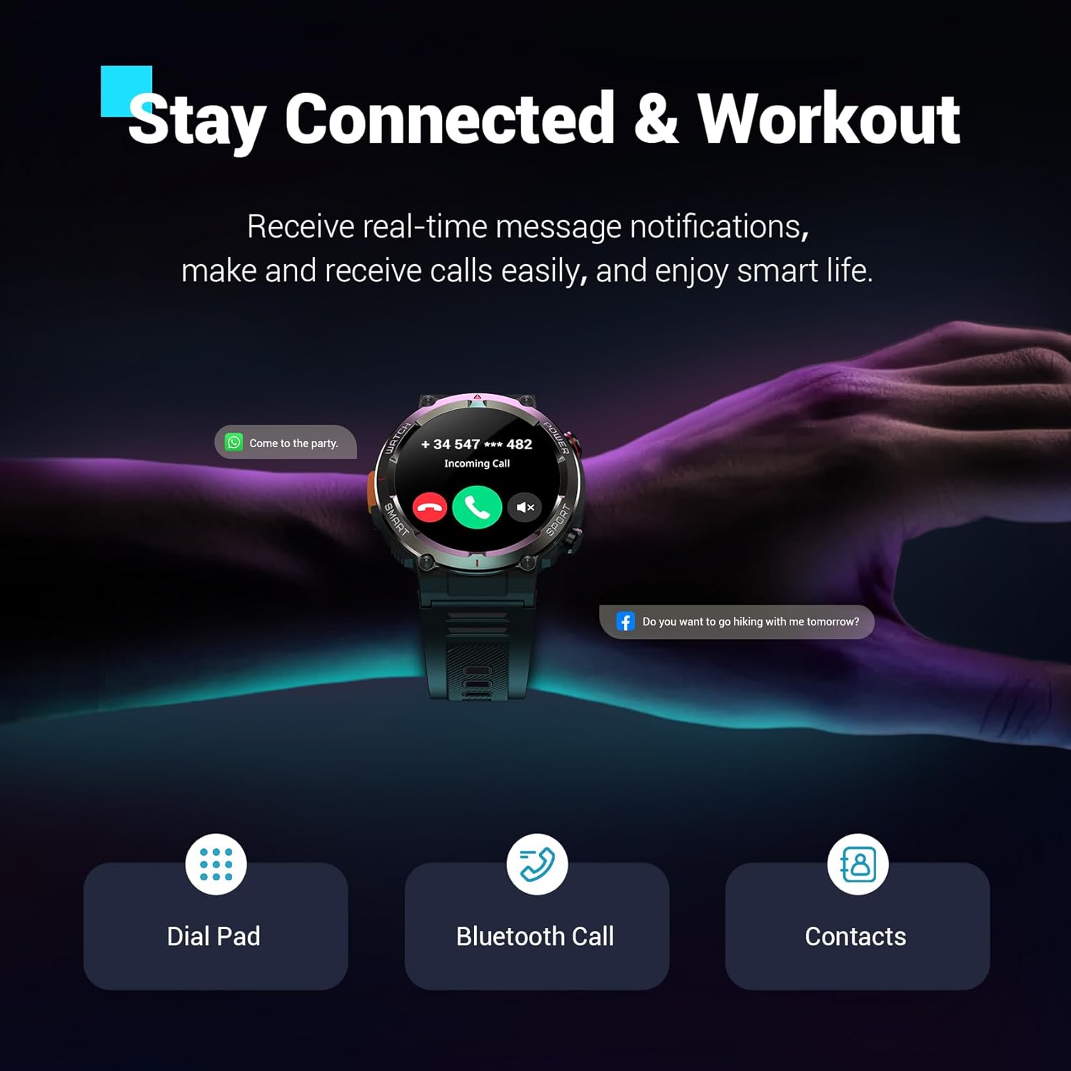 I am seriously impressed with this smartwatch. The build quality is rugged and durable, perfect for outdoor use and everyday wear. The battery life is unbelievable. I’ve been wearing it daily and barely think about charging it. The flashlight and compass are extremely handy, especially when outdoors or during power outages.Call and text features work smoothly with both iPhone and Android, and call quality is clear. Health tracking like heart rate, SpO2, and sleep monitoring is easy to use and gives consistent readings. The screen is bright and easy to read, even in sunlight.I also love that it comes with two straps so I can switch styles depending on what I’m doing. For the price, this watch offers way more features than expected and easily competes with much more expensive brands. Highly recommend to anyone wanting a tough, reliable, all-in-one smartwatch.