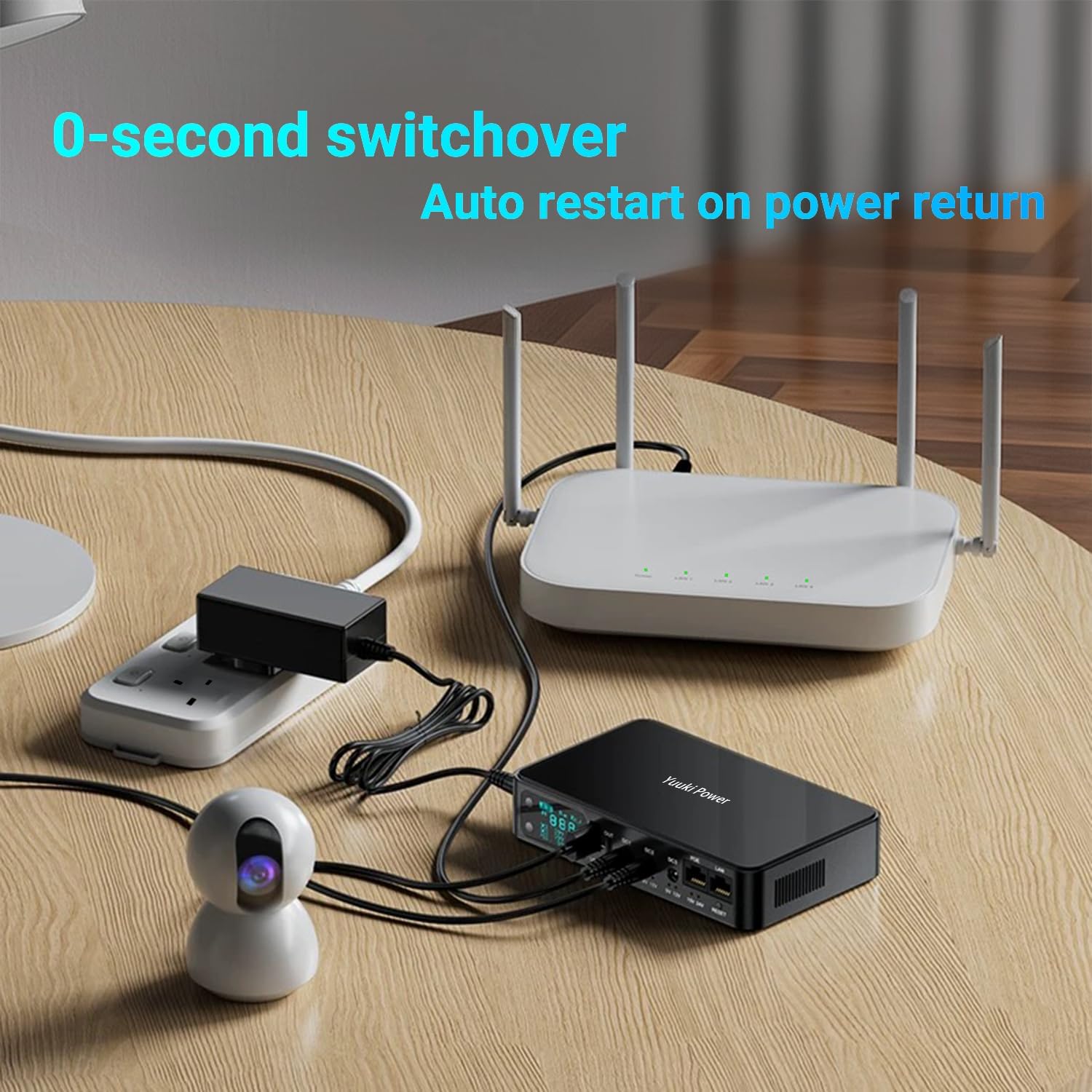 18000mAh (66Wh) battery backup provides hours of uninterruptible power for modem routers