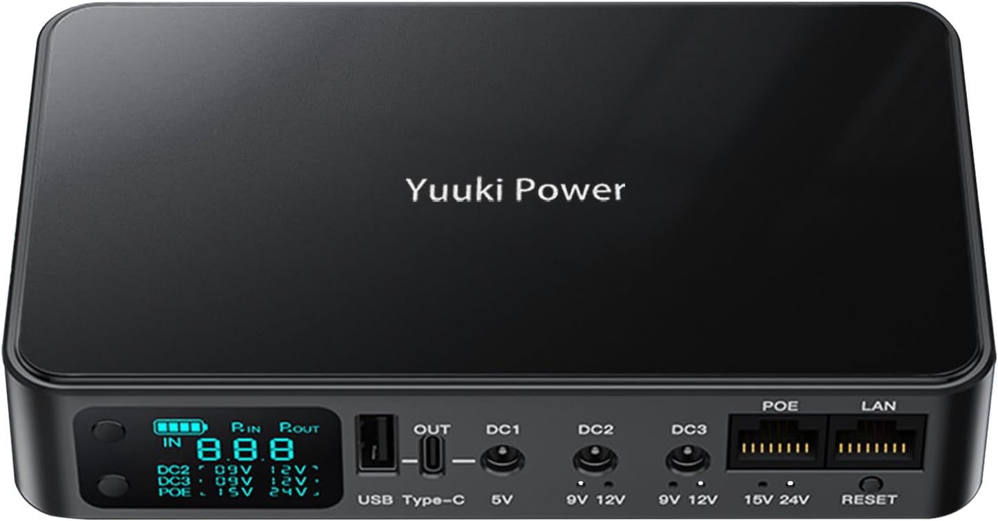 The Yuuki Power UPS has not been used in anger yet as a UPS as my power is generally pretty stable.However, it has been in use for over a month now, powering both my BT/Plusnet hub2 router and the Openreach ONT which use both 12V connections giving me back a 240v power socket. The unit is especially useful in that it provides a rare 5.5×3.0 connector needed for the BT Hub as well as the two cables I needed. The display might be a bit bright for some people. Just waiting for a power cut now …