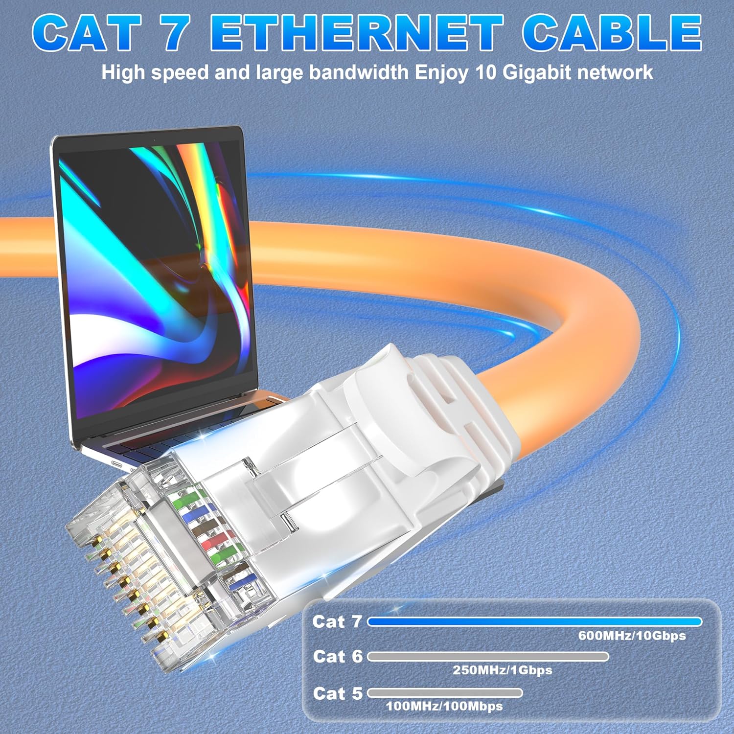 High Speed Ethernet Cable: Cat 7 network cable with 10Gbps 600MHz higher bandwidth (10 times more than Cat 6) for 10 Gigabit Ethernet, low signal attenuation within 100 meters and fast and stable transmission over long distances.It is suitable for home server applications, HD video chatting, streaming video; supports LAN and a wide range of gaming setups; office video conferencing, data centers, and other scenarios with stable connections, making it a high-quality choice for home and industrial cabling.