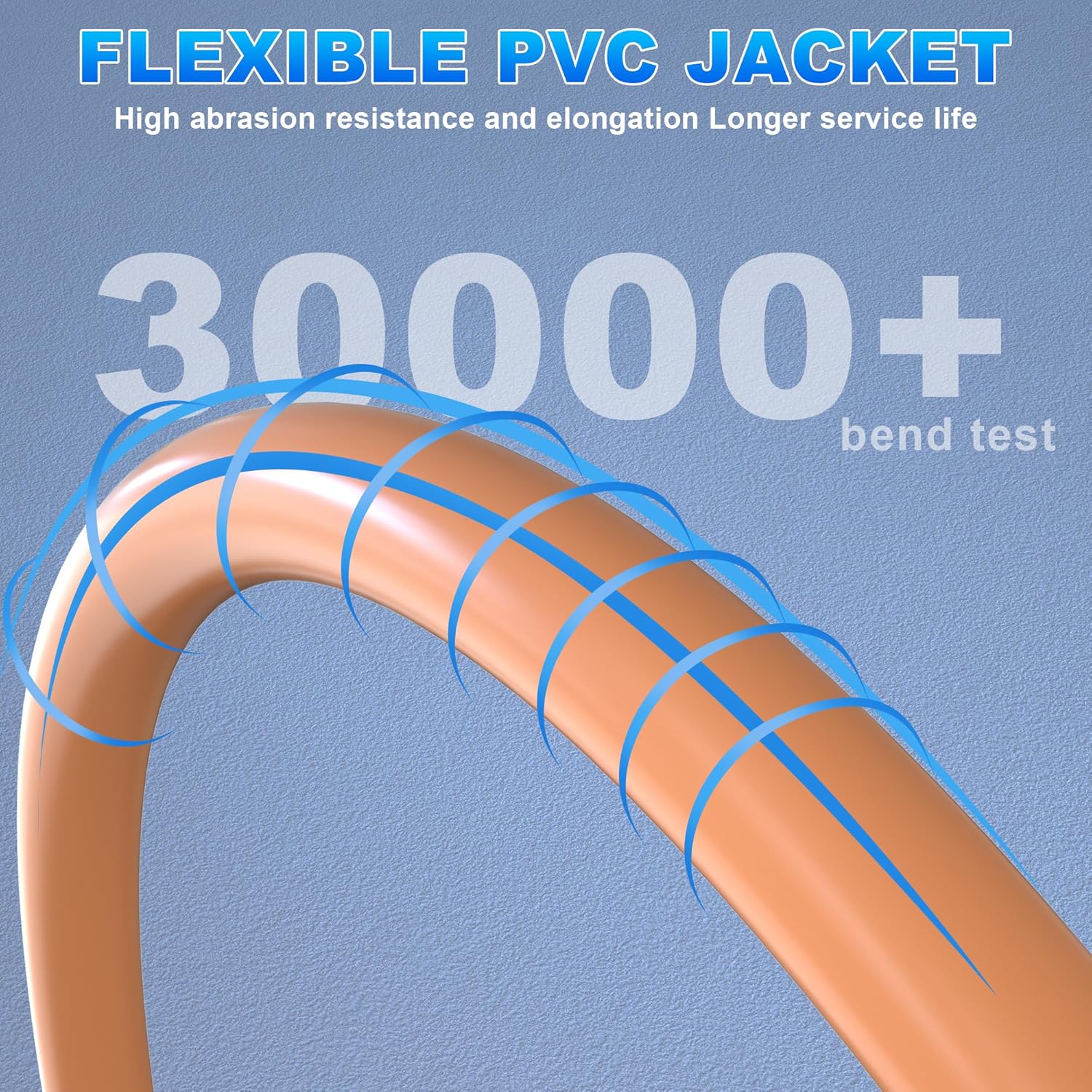 Cat 7 Outdoor Ethernet Cable Waterproof: The Cat 7 outdoor cable has a high-quality PVC, which has good insulation performance and excellent UV resistance and waterproof properties. The Cat 7 cable is wear and bend resistant, which protects the internal cores from damage and still works effectively in harsh weather such as cold, humidity and heat. It provides an excellent network connection solution for you to connect routers, laptops and other devices outdoors, no need to change cables frequently.
