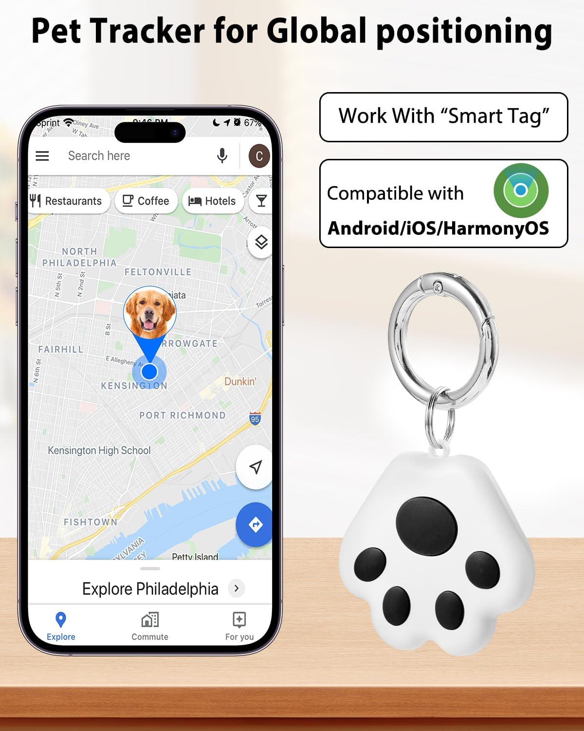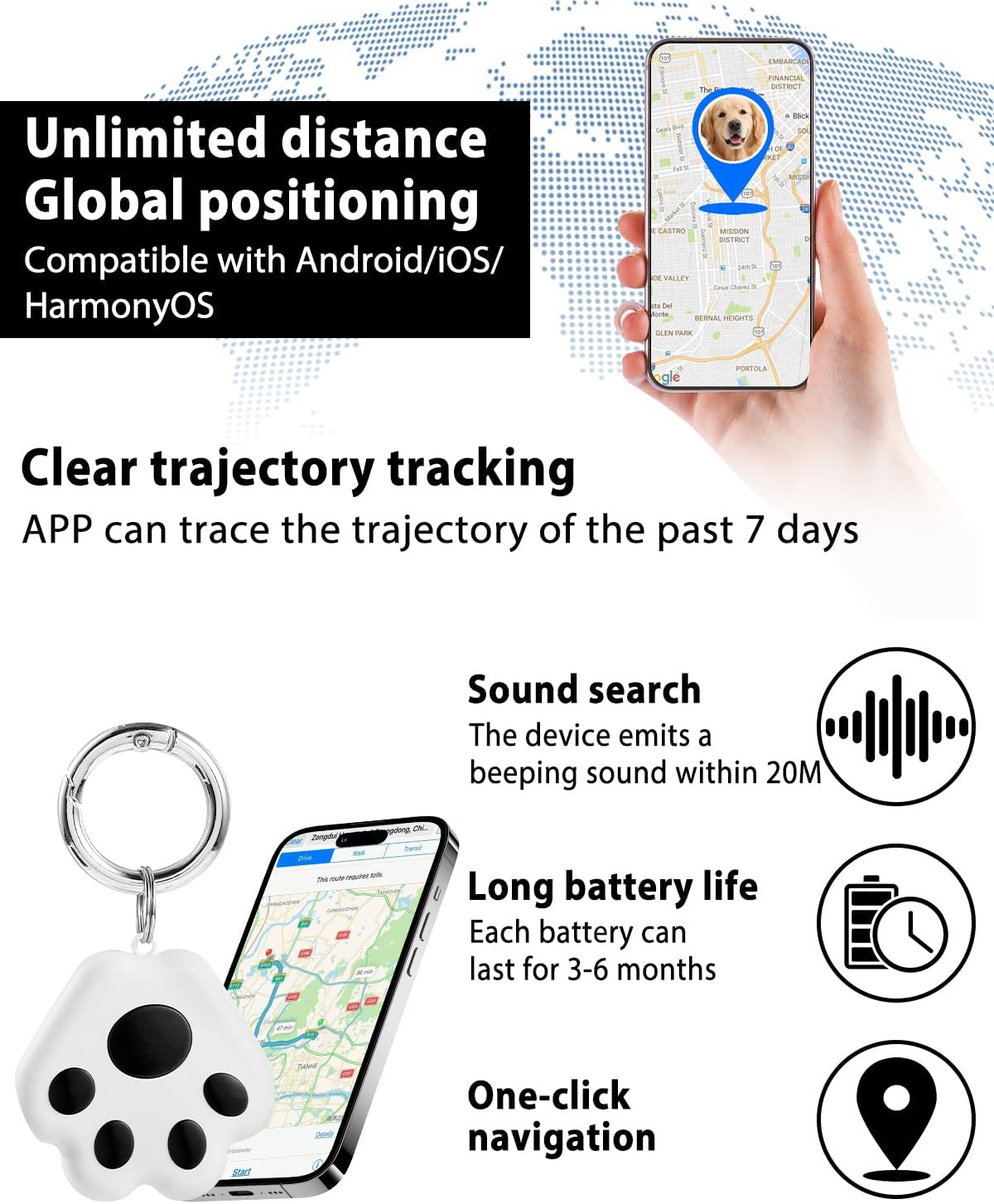 Rugged Mini Design for Outdoor Use — Small, waterproof and dustproof paw-shaped tracker ideal for outdoor adventures, travel, plane or yard—perfect mini tracker for dogs and cats