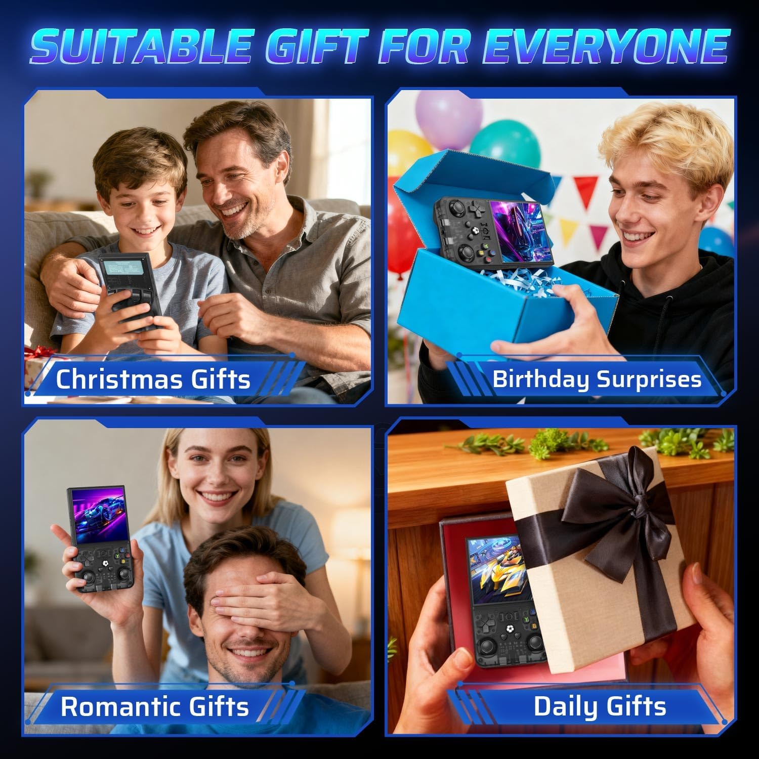 【The Perfect Gift for Endless Joy】The Perfect Gift for Endless Joy: The R36MAX handheld game console is the ideal present for gamers, retro enthusiasts, and families alike. It friendly competition, and hours of nostalgic fun for all ages. Whether for birthdays, Christmas, or just because, this retro game console means gifting countless memories and shared happiness