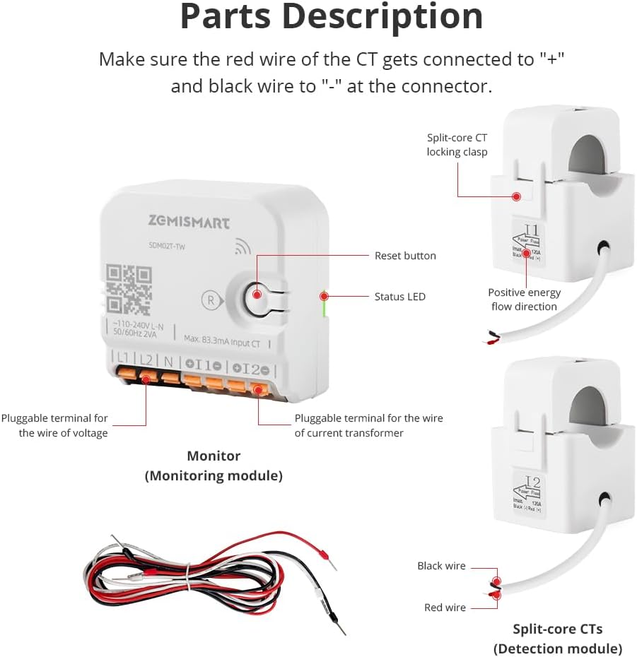 【Quick & Easy Installation】Features pluggable terminals and compact split-core CTs for a hassle-free setup, eliminating the need for complex wiring and making installation effortless.
