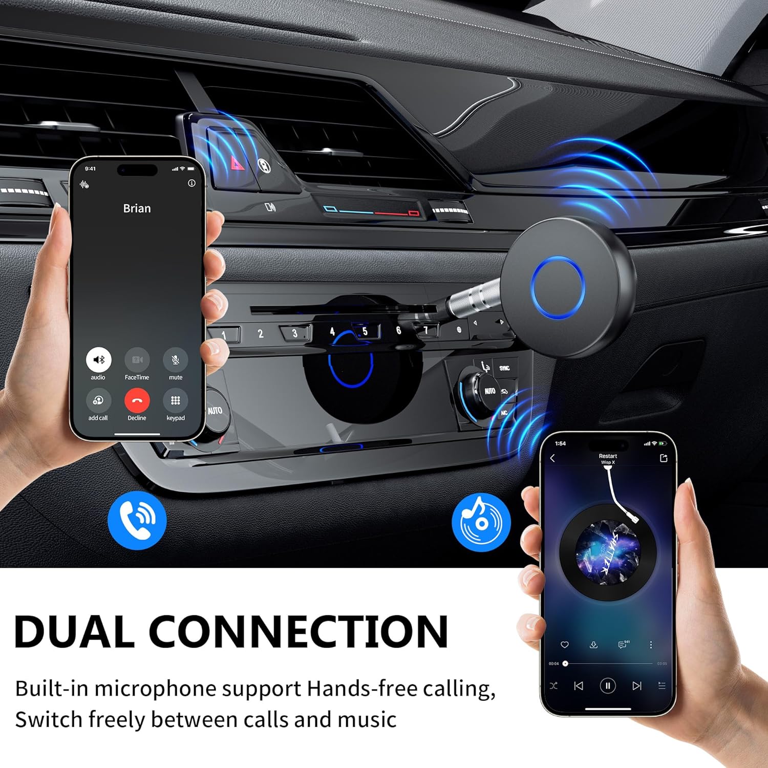 【ADVANCED BLUETOOTH 5.0 RECEIVER】: A solution for cars with non Bluetooth capabilities, enjoy handsfree calling, GPS and streaming music while in driving. It’s also connect with older home audio systems and wired headphones via 3.5mm aux cable/adapter to help you enjoy the wireless