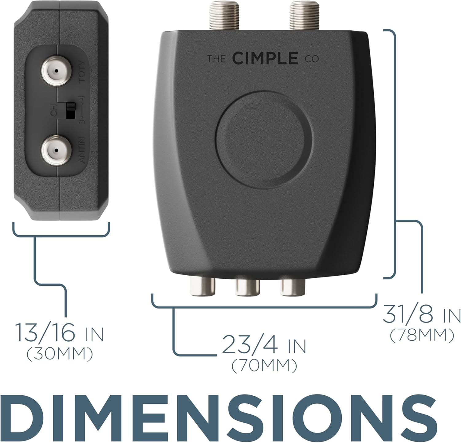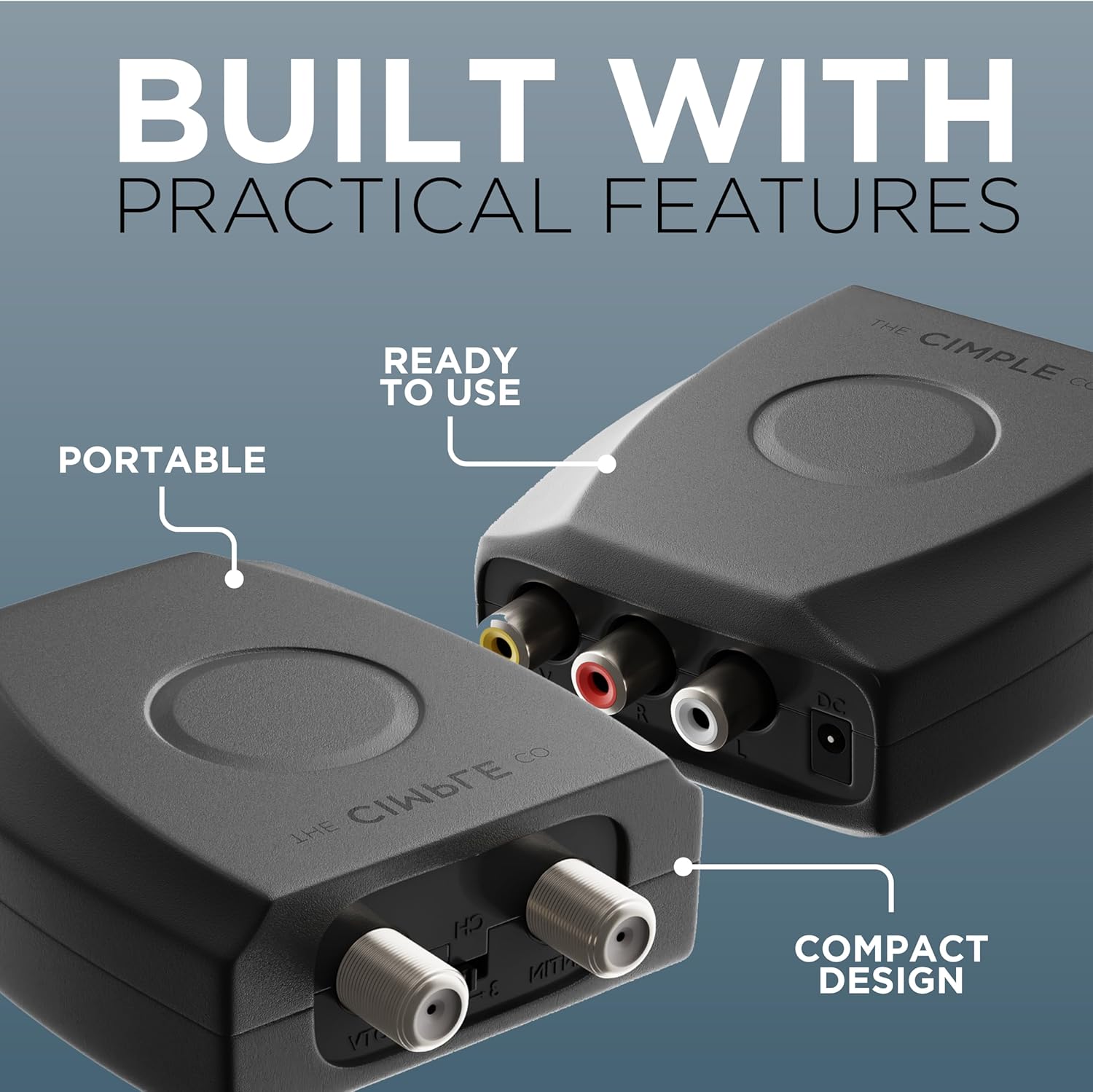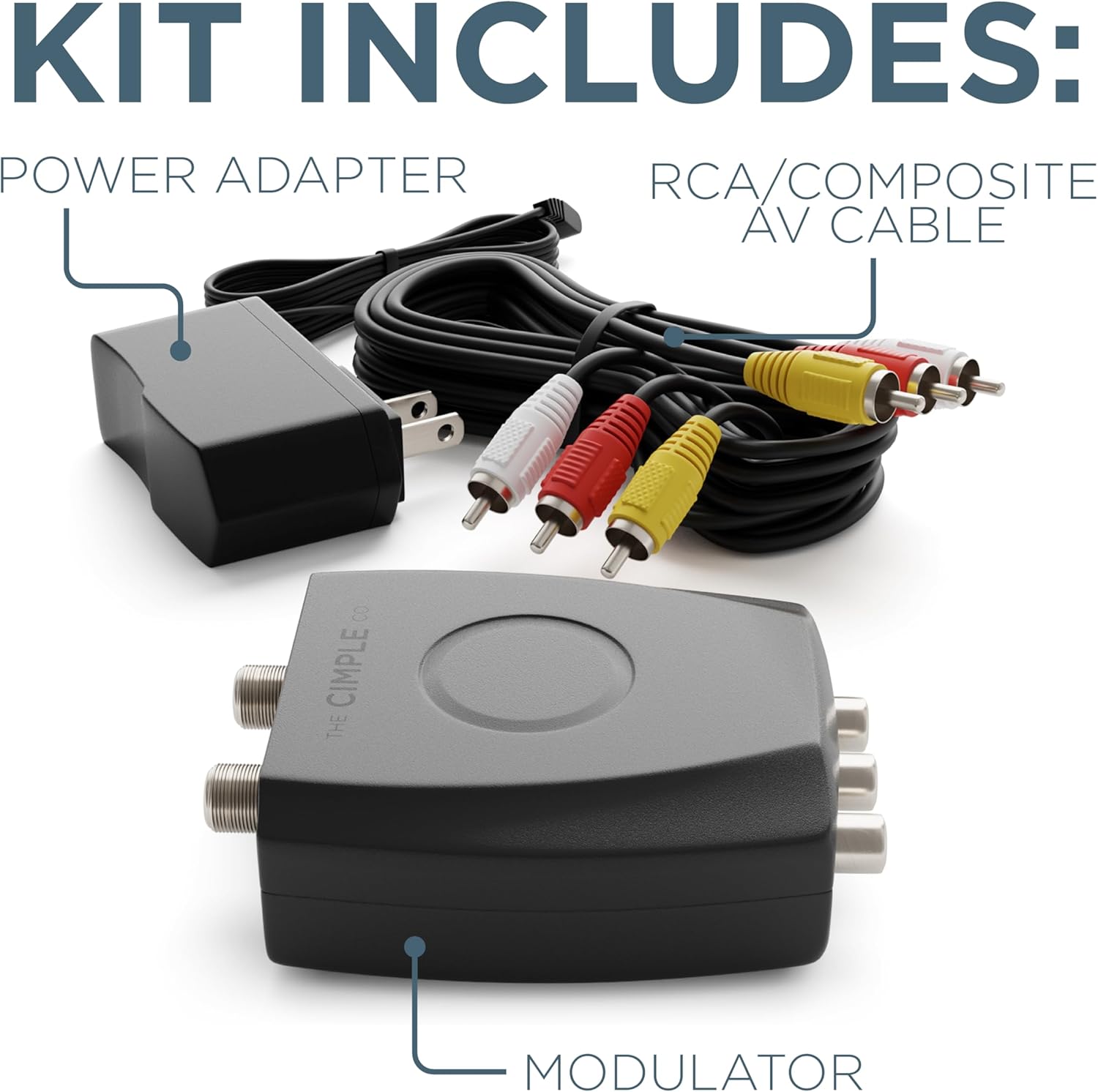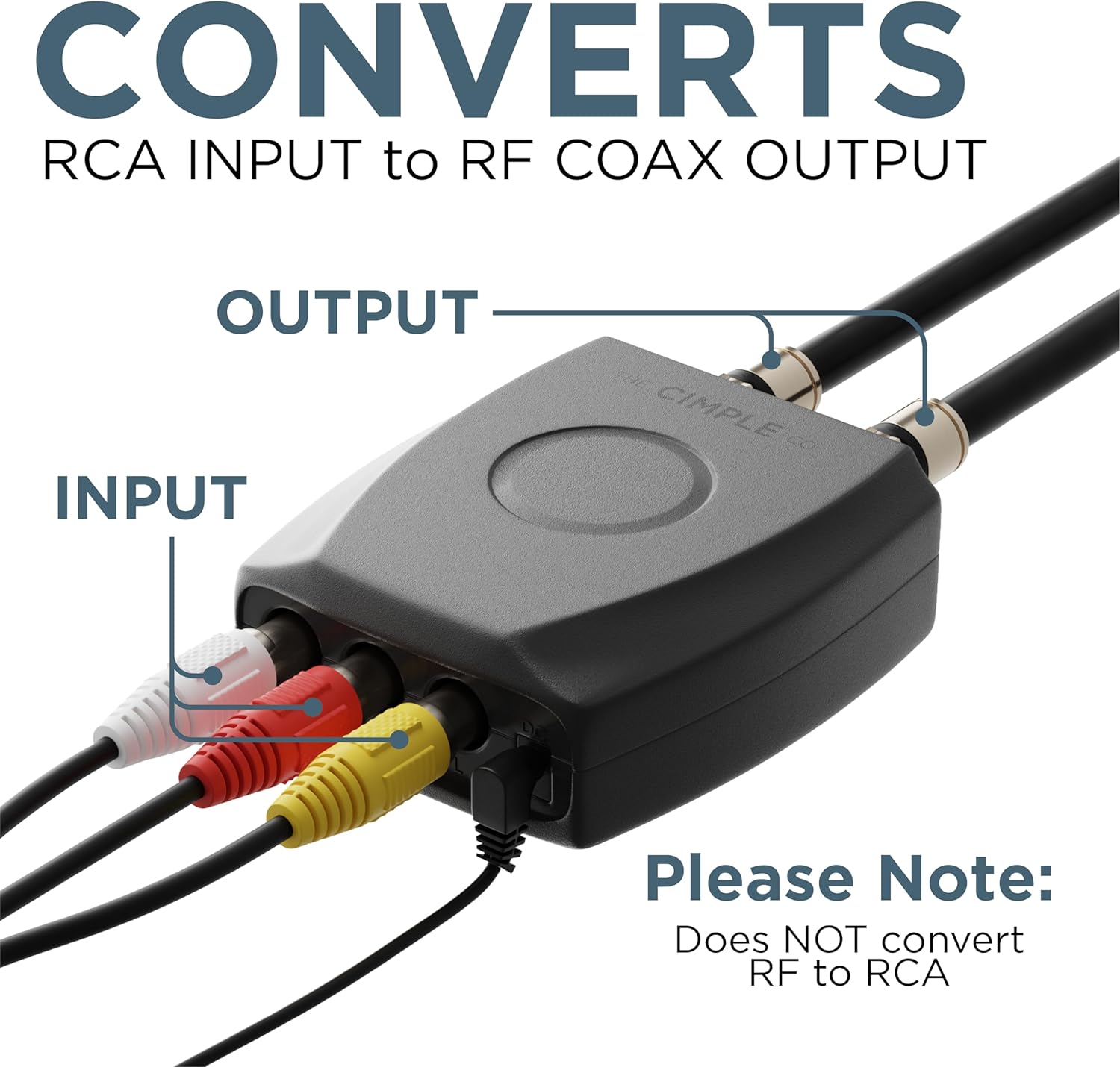 THE CIMPLE CO – RF Modulator, RCA Composite to RF Coaxial Adapter, Converts Standard Definition Signals to Coax, Watch DVD, VHS, Game Consoles on TV, Includes A/V Cable, Does Not Work in Reverse