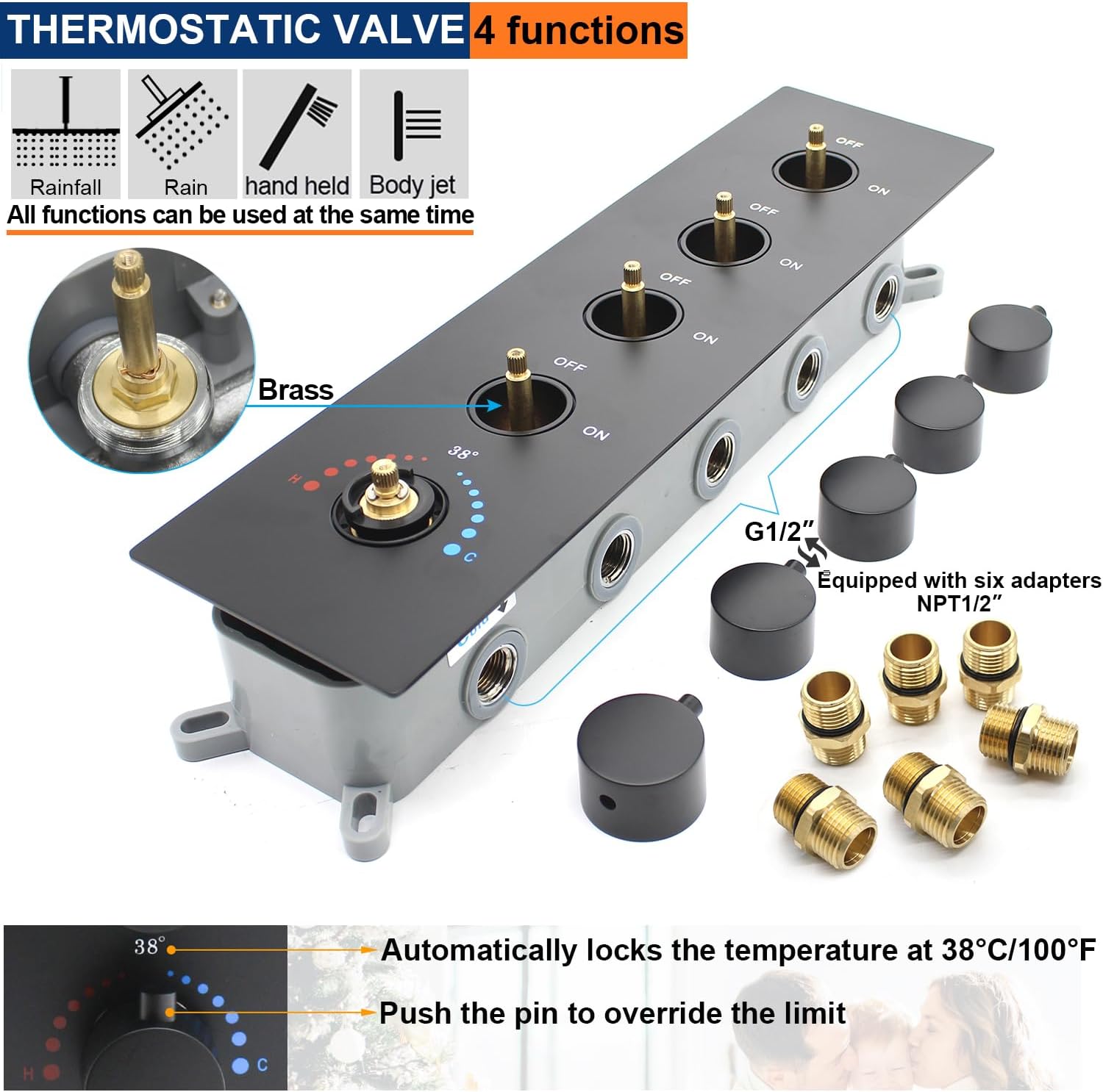 THERMOSTAT SHOWER MIXING VALVE: Precise Temperature Control, so that the water temperature can be safely stopped at 38℃, No need to re-adjust the temperature every time. Universal thermostatic shower valve, pressure balancing shower diverter avoids the discomfort caused by sudden changes in water temperature and is very suitable for the elderly or children, which features scald prevention, giving your family a safe and comfortable shower.