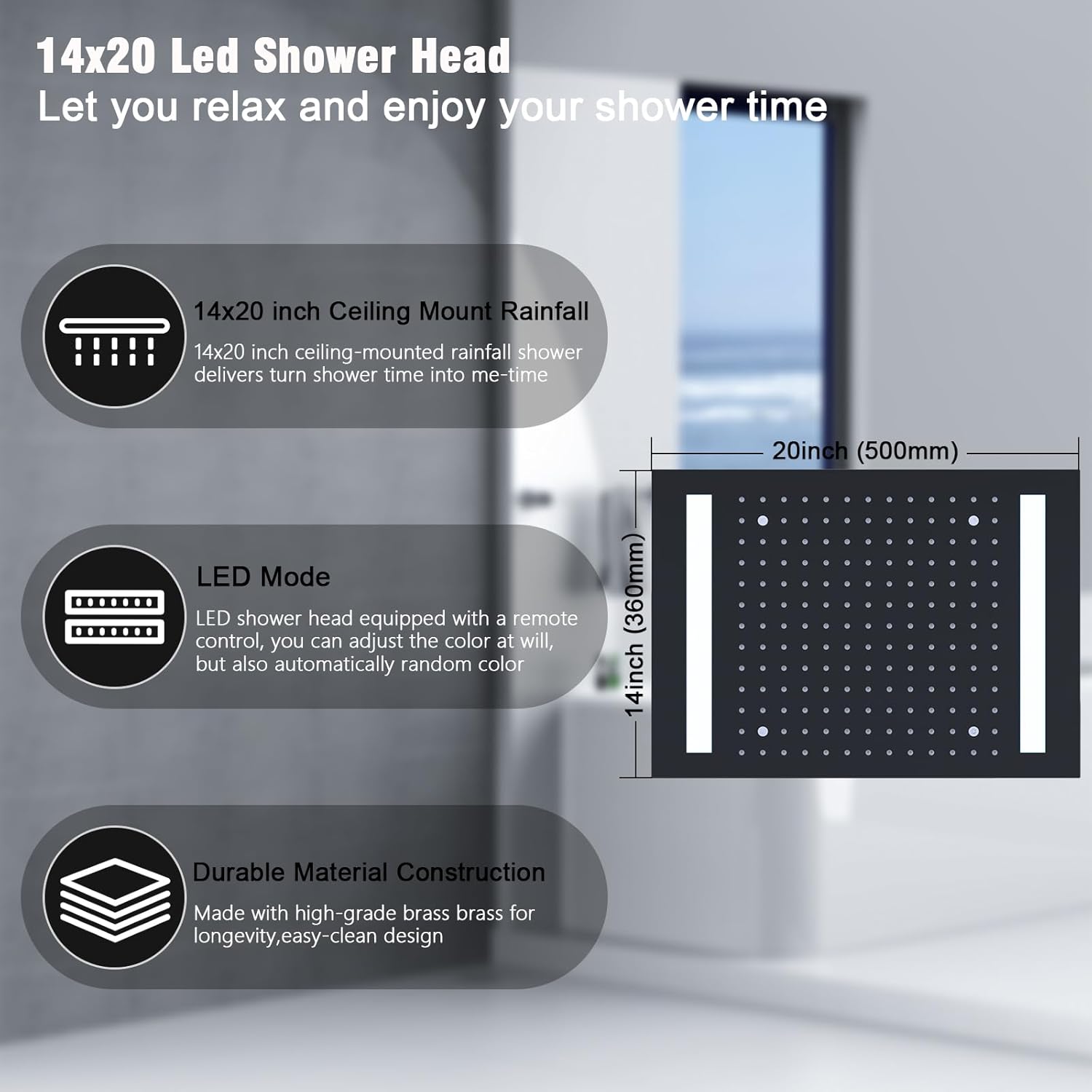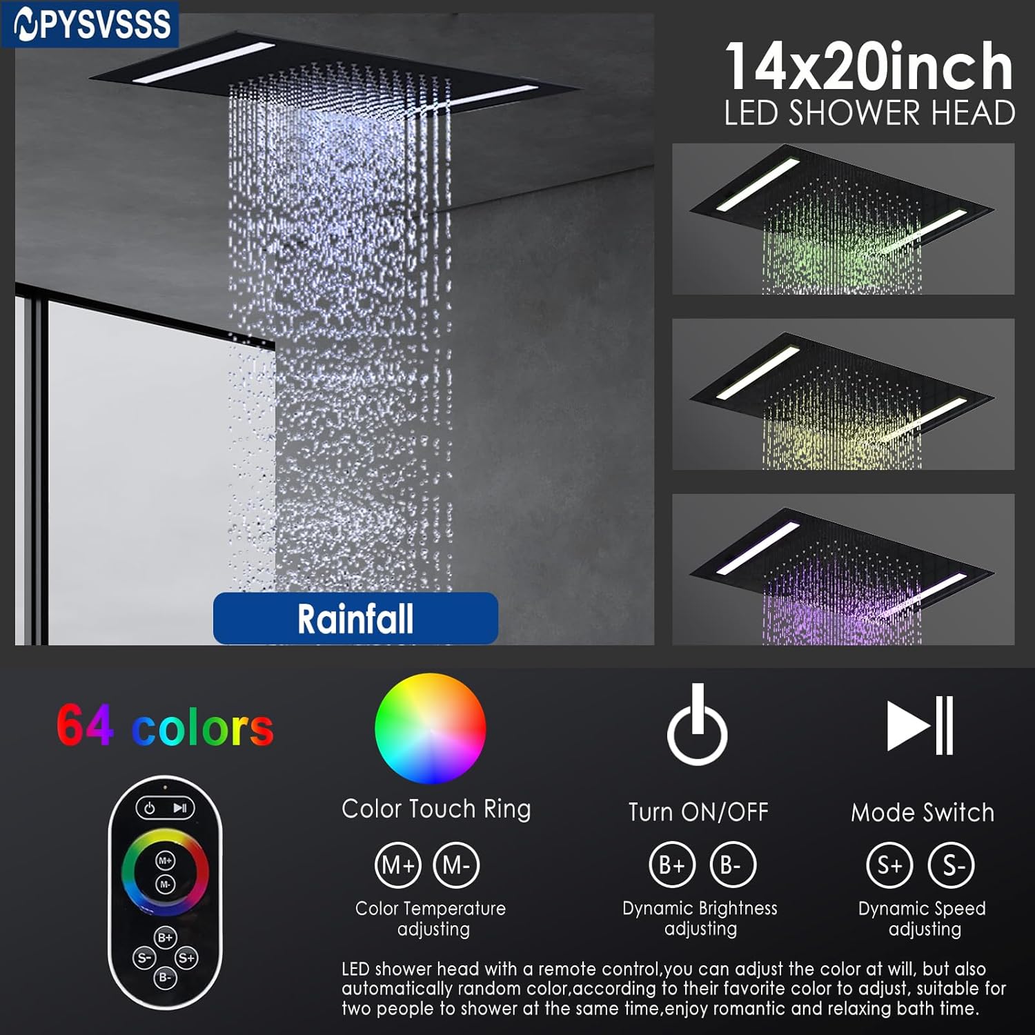 LED SHOWER HEADS: LED shower head with 7 colors, equipped with a remote control, you can adjust the color at will, but also automatically random color, need to connect 110V-220V household voltage, according to their favorite color to adjust, suitable for two people to shower at the same time, enjoy romantic and relaxing bath time.